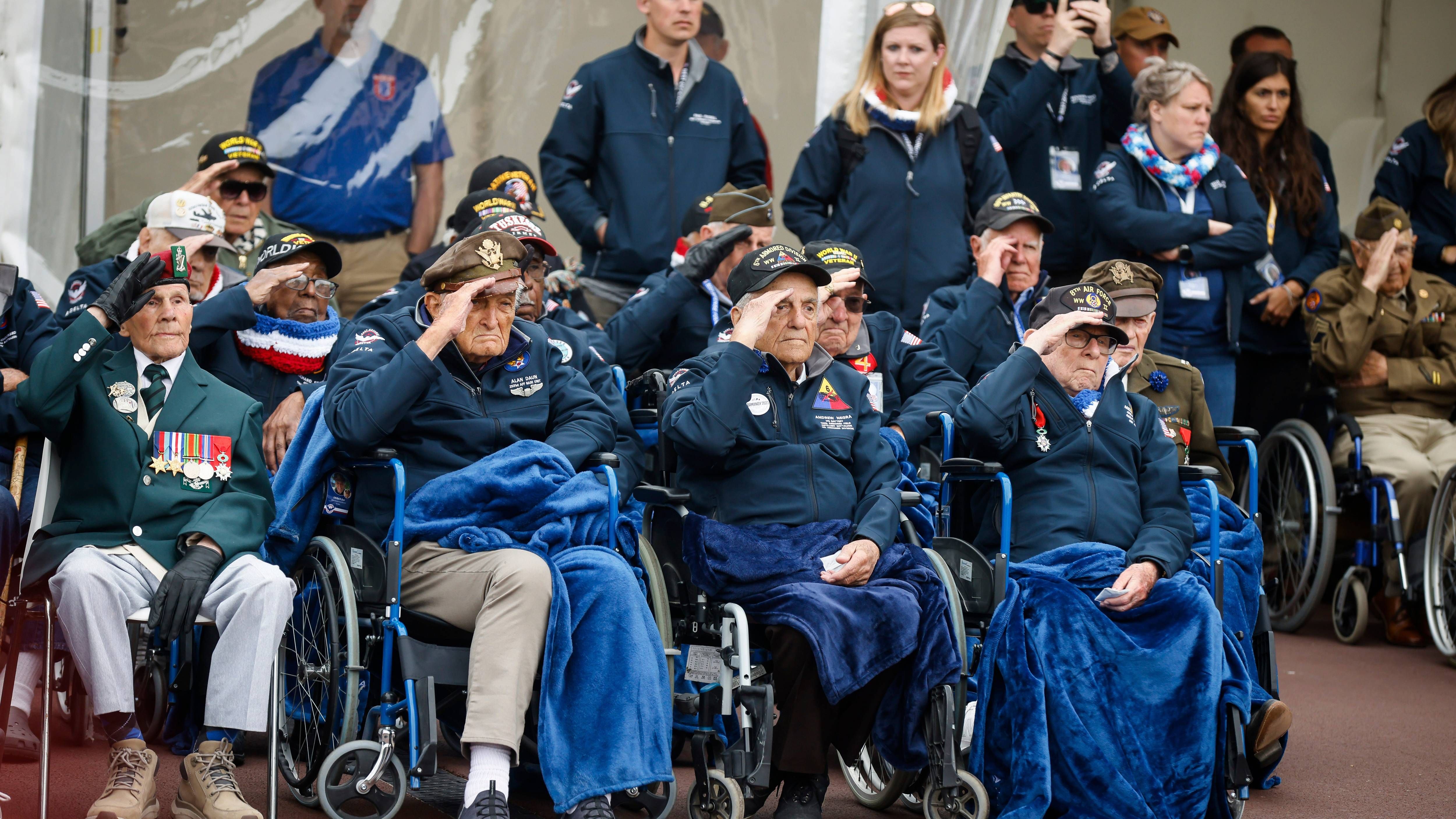 As part of the ceremony, WWII veterans and other guests presented wreaths in memory of the 9,000 Allied soldiers killed or wounded during the invasion.