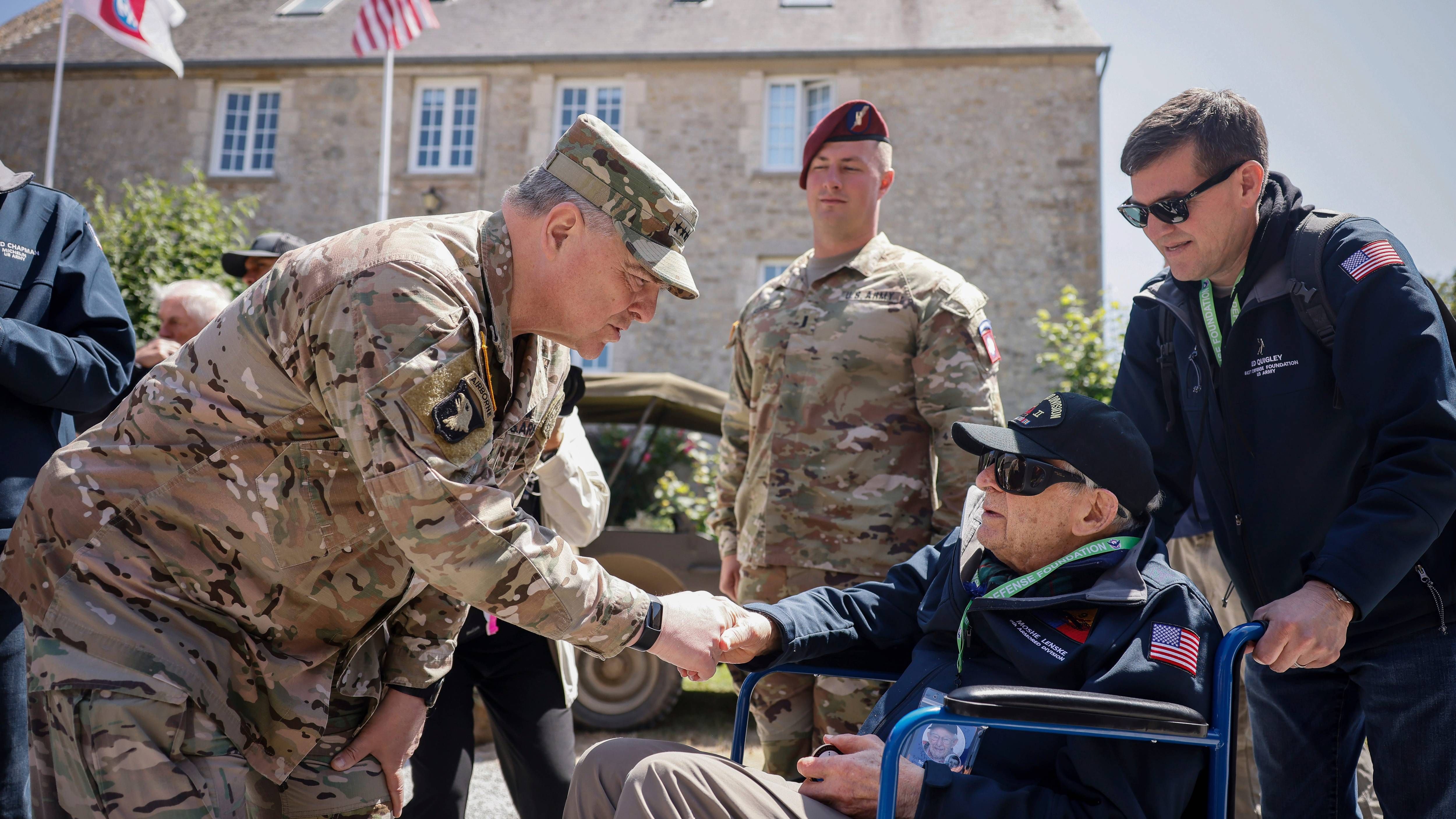 The Normandy celebrations were also a chance for Milley to linger with troops who consider him one of their own, as he winds down his own four-decade military career. The chairman held commands in both the 82nd Airborne Division and the 101st Airborne Division, and the Normandy fields, towns and causeways are these divisions' hallowed ground.