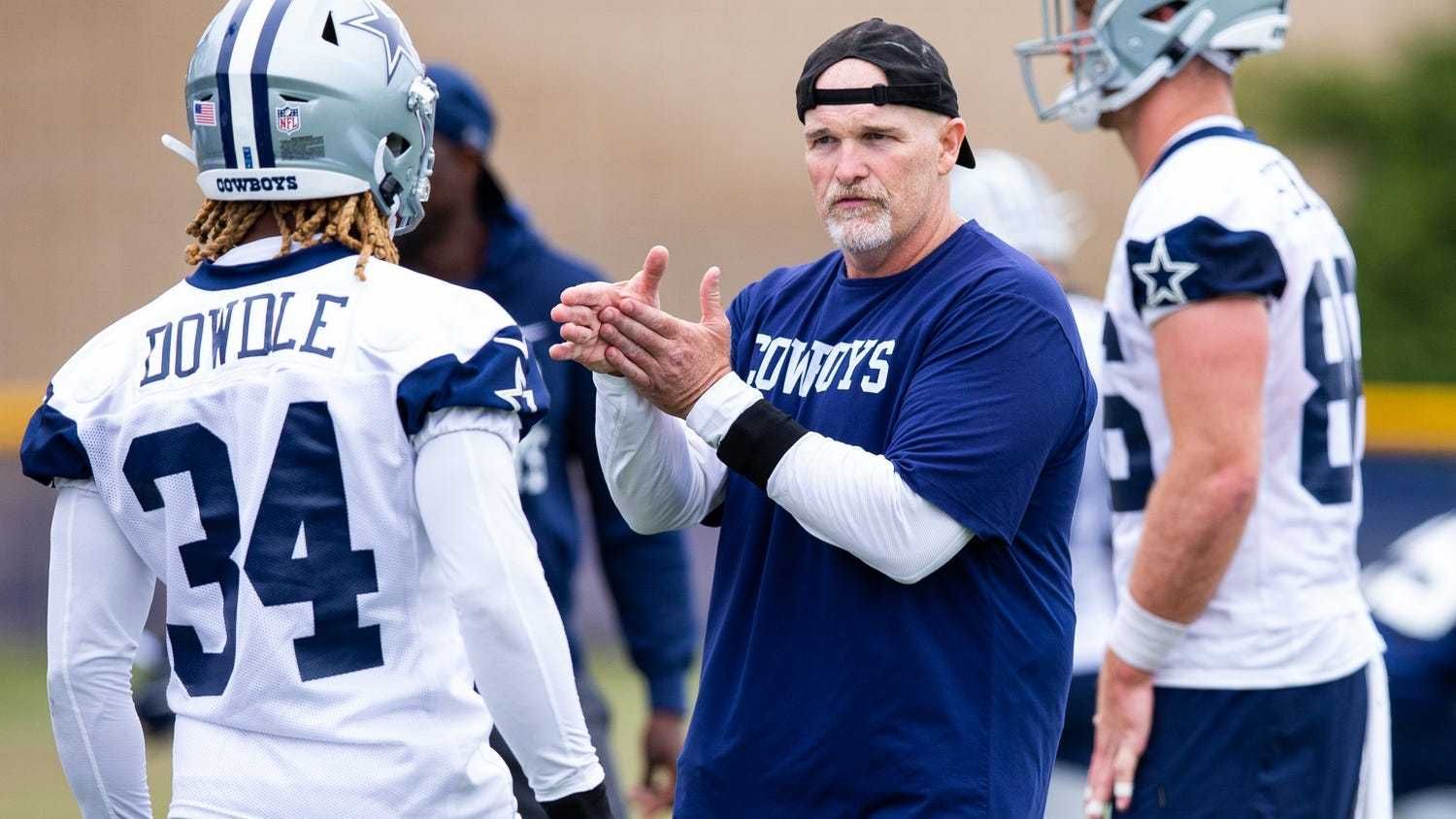 Carryovers Leighton Vander Esch (four early tackles) and Dorance Armstrong (with a sack) were productive. The tackles were Osa Odighizuwa (a rookie) and Brent Urban (a vet free agent). At one point, safeties Damontae Kazee, Jayron Kearse (both free agent newcomers) joined Donovan Wilson on the field at the same time.