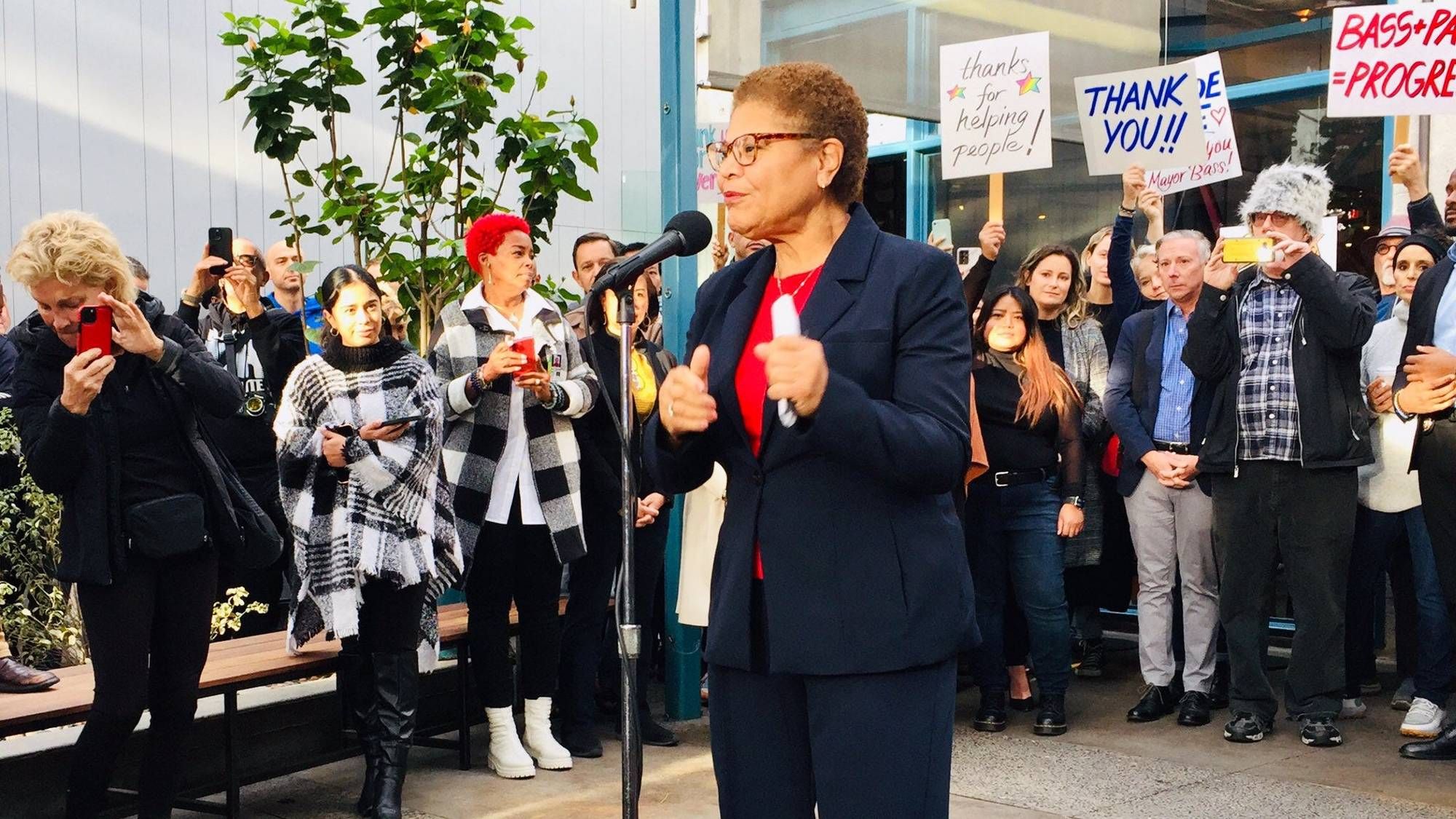During her speech, Bass touted her Inside Safe Program, claiming 1,000 people are now “living inside safe.”
