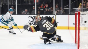 Hertl scores twice, Lindbom gets his 1st NHL win in the Knights' 4-3 victory over the SharksNovember 30, 2025 -