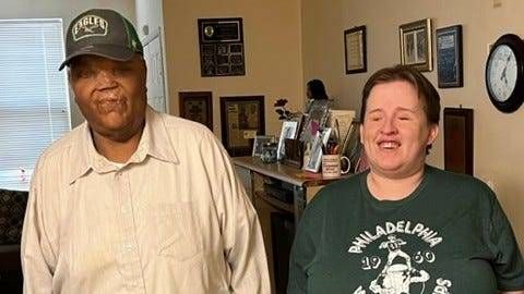 PHILADELPHIA (KYW Newsradio) — It's Feb. 4, 2018, and Philadelphia sports superfans Amin Khalifa and Joe "Dude" Campbell are in a dilemma. The longtime friends are at the biggest Philly sporting event of their lives, but Khalifa isn't allowed to do something he's been doing for more than 15 years: bring his original signs into the game.