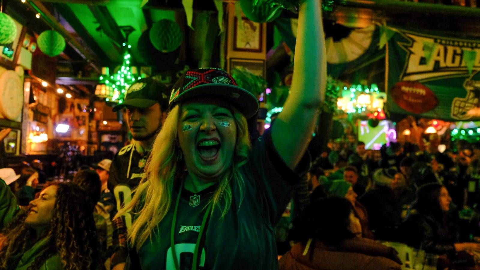 Fans across the area spent their morning grabbing their midnight or Kelly green Eagles gear, cooking their favorite dishes for home parties, and otherwise preparing for kickoff of the fourth Super Bowl in Eagles history. So did pub workers tapping kegs, some with Eagles green beer, while restaurant and grocery store employees labored around the clock to prepare fans' favorite foods.