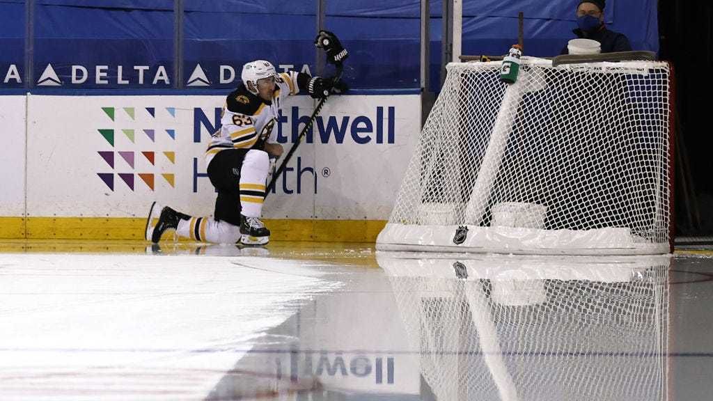 Brad Marchand then introduced himself to Brett Howden with some stick work after a whistle leading to a scrum involving everyone on the ice, and Jeremy Lauzon dropped the gloves with Pavel Buchnevich to cap off a physical period.