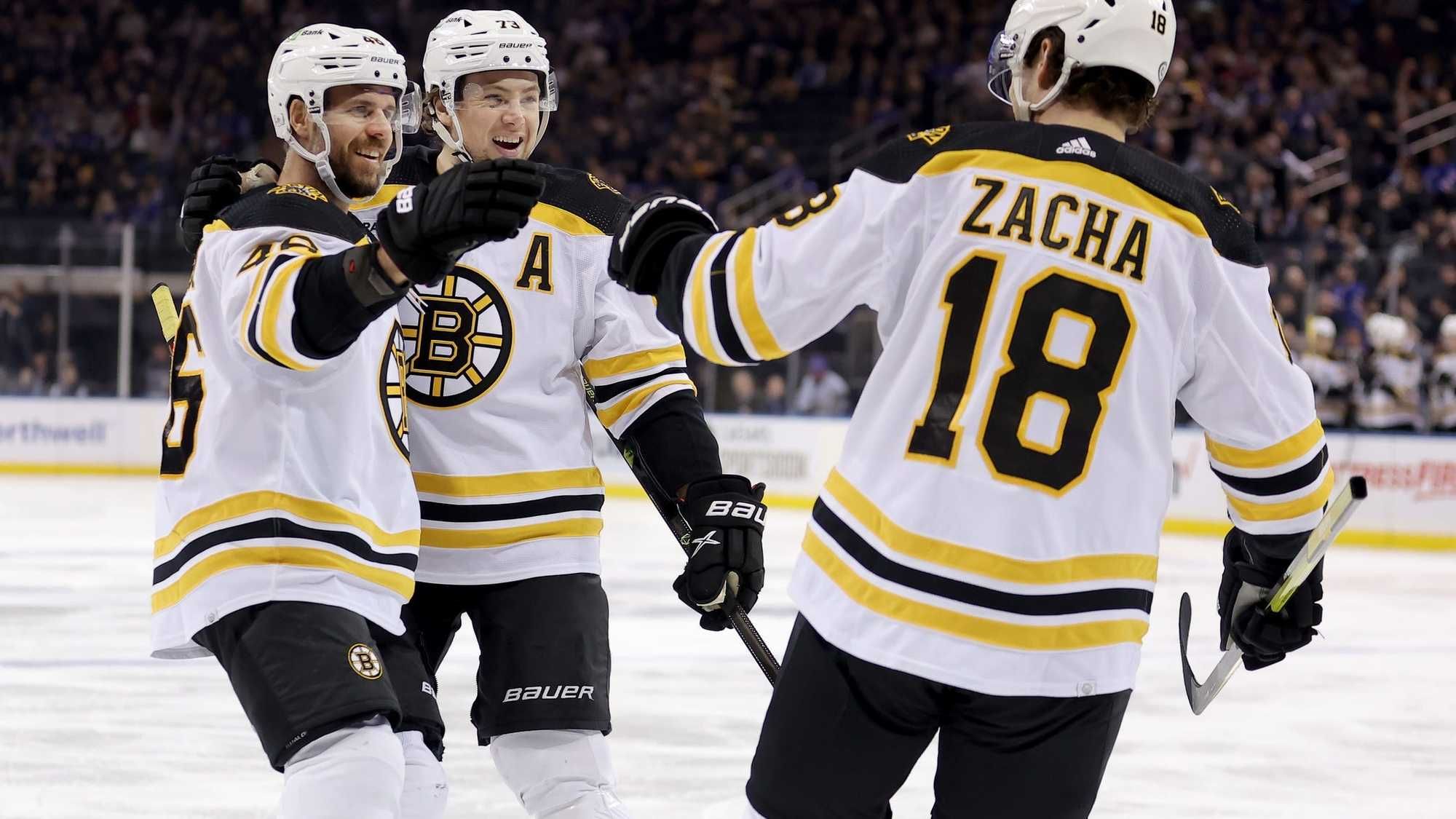 Of course, there's also the question of whether Pastrnak will get a rest game at some point, like most of the Bruins' other top players have gotten. Through Sunday, Pastrnak, Pavel Zacha and Charlie Coyle are the only three Bruins who have played in every game this season.