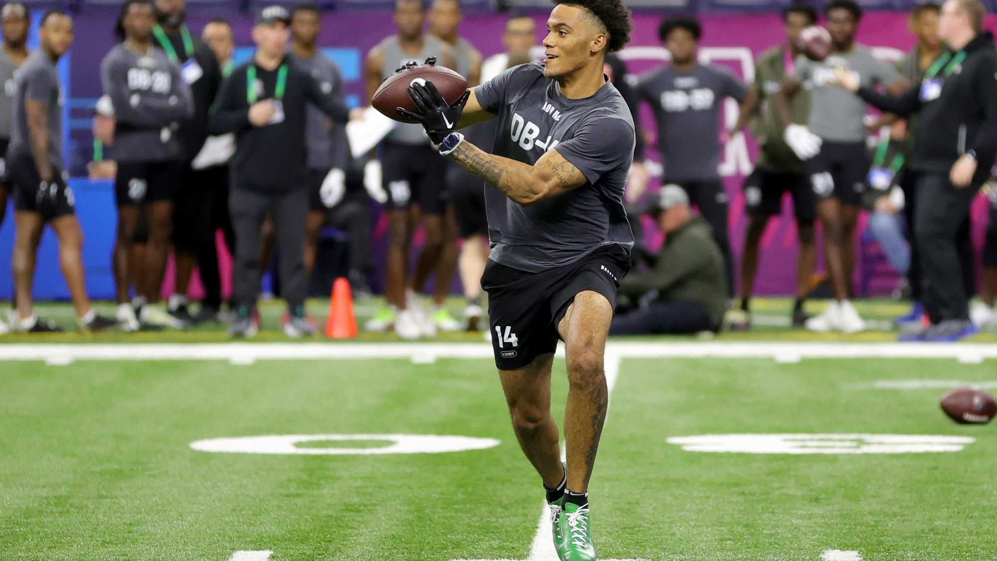 A: The Patriots wide receiver room was under the microscope at Tuesday's practice with JuJu Smith-Schuster, DeVante Parker, Kendrick Bourne, and Tyquan Thornton all absent from practice. It was the rookies' time to shine.