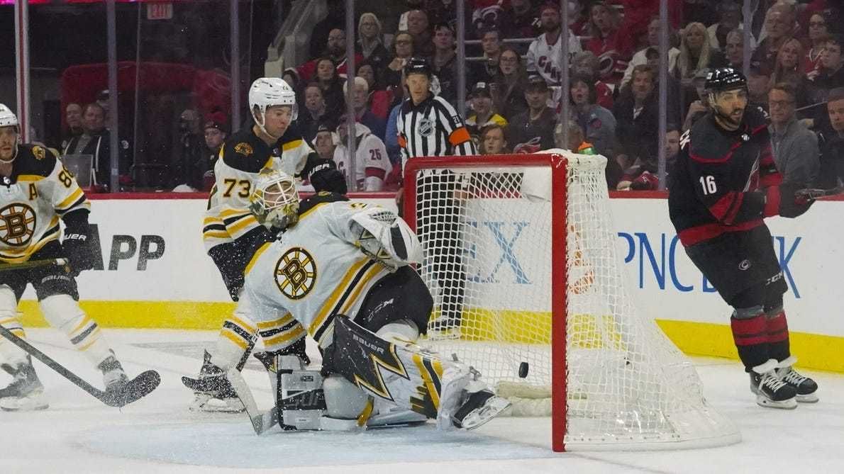 Bingo. When the Bruins had their offensive-zone time and shots, they didn't do enough to make life difficult for Carolina goalie Antti Raanta. When the Hurricanes got their opportunities, they sent bodies to the net and got the tips and screens Boston wasn't. That's how they went from getting outplayed for the first 35 or so minutes of the game to scoring twice in a 2:10 span late in the second period to take a 2-0 lead.