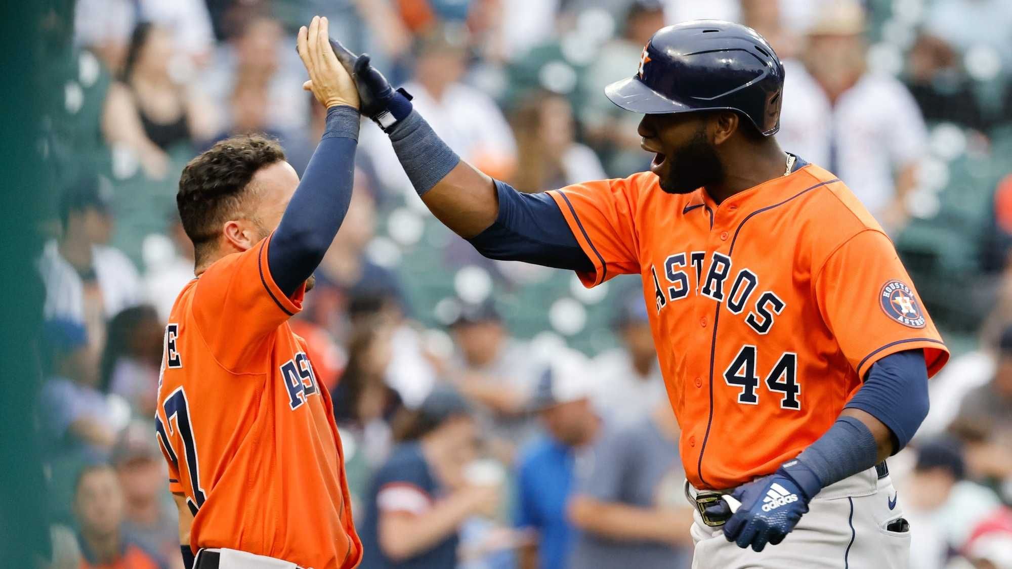 The Astros finalists are: Jose Altuve (2nd base), Yuli Gurriel (1st base), Yordan Alvarez (DH), Carlos Correa (shortstop), Alex Bregman (3rd base), Martin Maldonado (catcher), Michael Brantley (outfield). Kyle Tucker was one spot shy of being a finalist among AL outfielders.