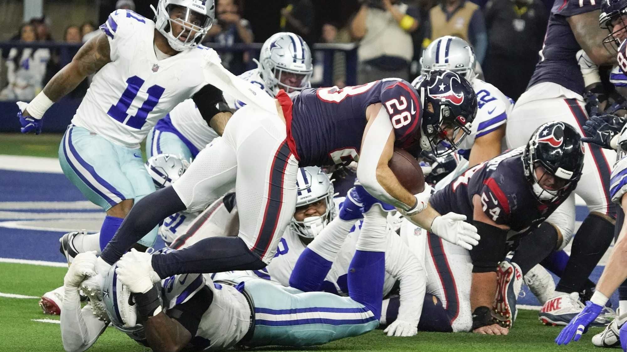 Dameon Pierce, who leads all rookie running backs with 939 rushing yards along with four touchdowns, suffered a high ankle sprain against the Cowboys that is expected to sideline him for at least a couple of weeks.