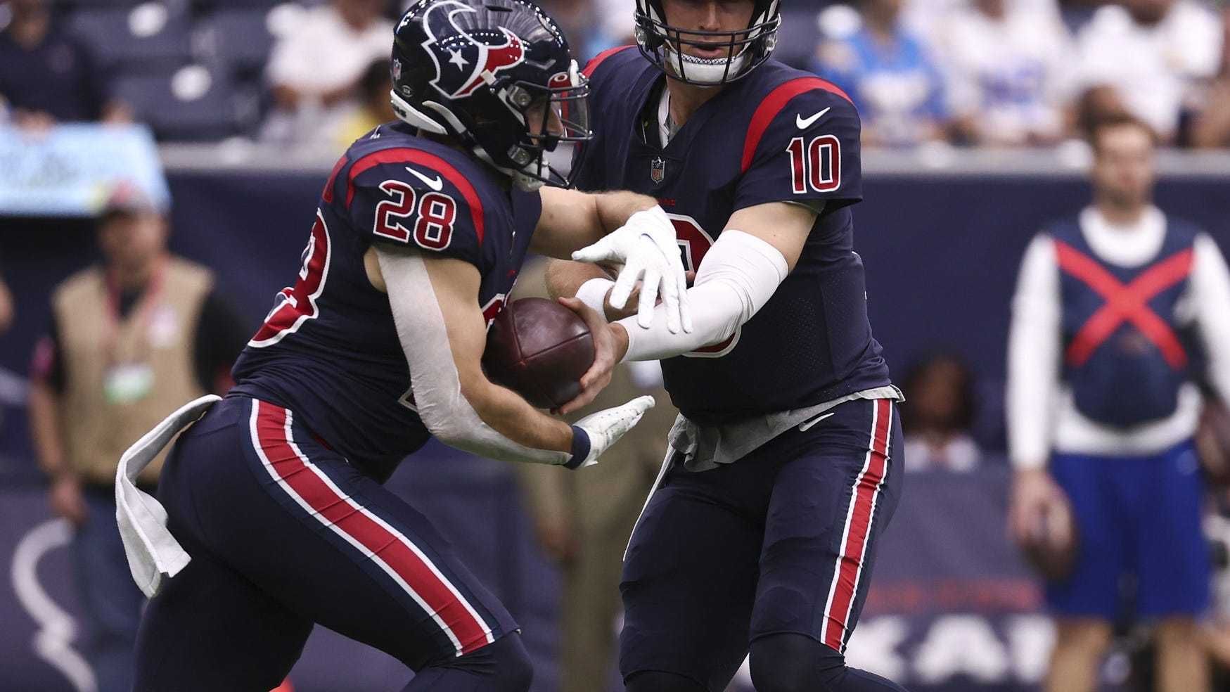 Take the Texans' first three opponents this season as examples. Colts running back Jonathan Taylor, who led the league in rushing last year, is backed up by Nyheim Hines. While Hines has only seven carries for 11 yards so far this season, he remains a part of their passing game and he's playing behind one of the league's top backs.