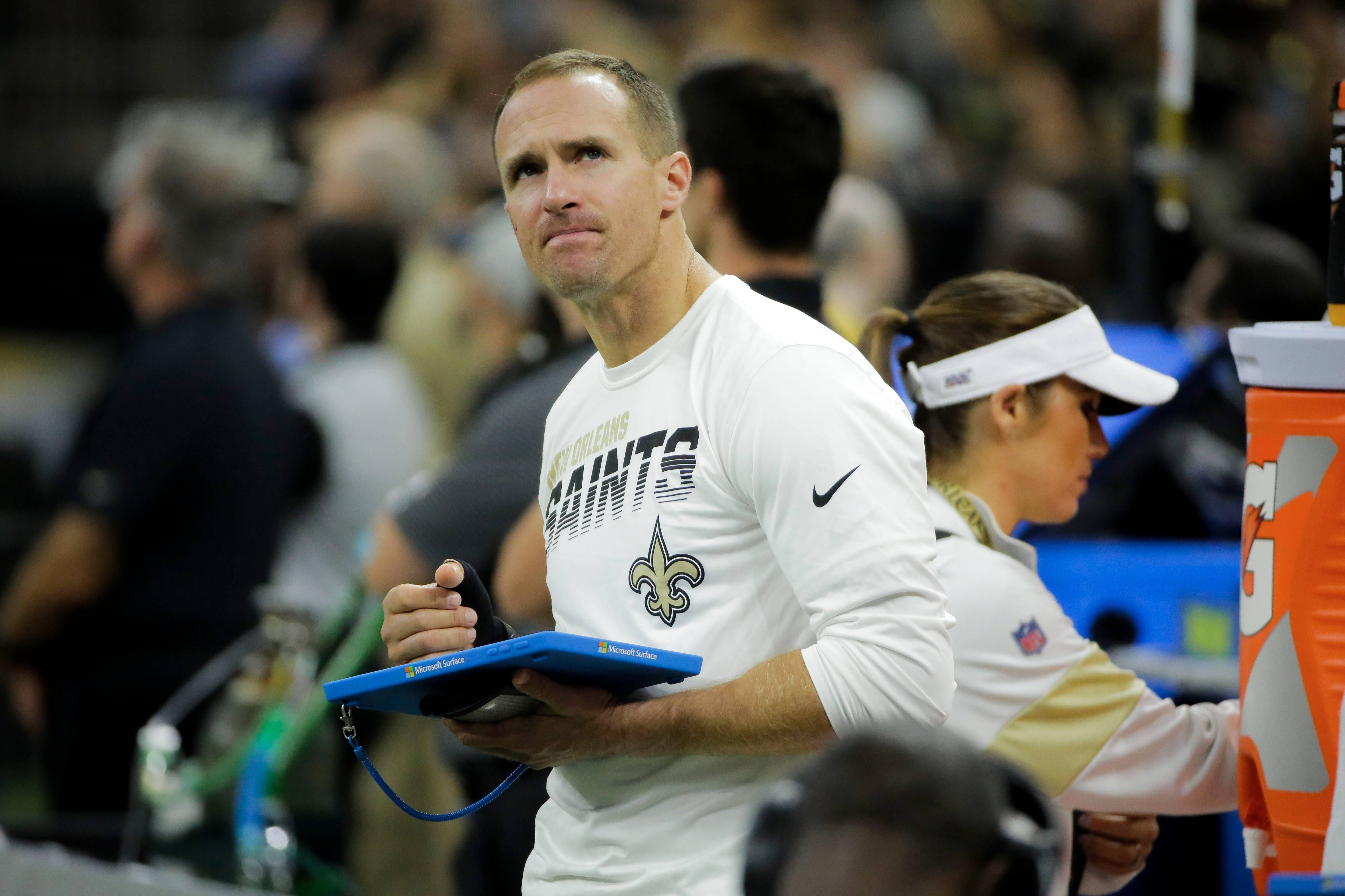 "The splint just basically goes on the outside of the thumb," Brees said. "I'm gonna have to tape it on there. It protects the joint to a degree because it does take a while for that ligament to actually heal. So basically while it's healing, it has that internal brace which was sewed… back into my thumb along with the ligament. And then I've got this splint that sits on the outside of my thumb that I have to tape on that's supposed to provide a little bit of protection as well."