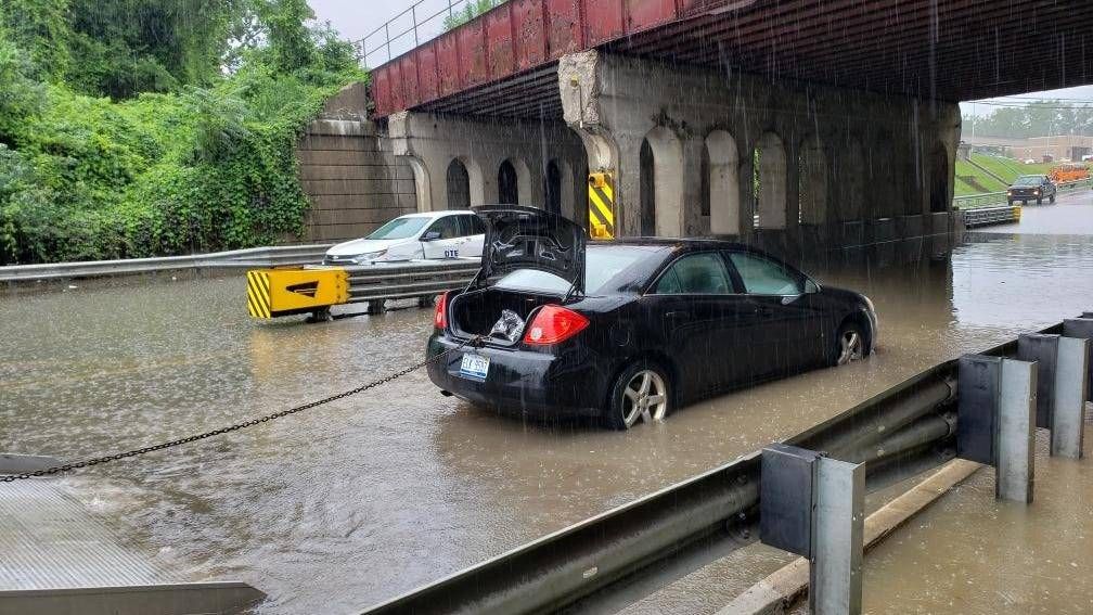 The tunnel at Jefferson and the Lodge can collect waters up to five or six feet deep, according to Shaw. He said the troopers located the man, stranded on the top of his car, and they teamed up with the Department of Natural Resources to get a boat to him.