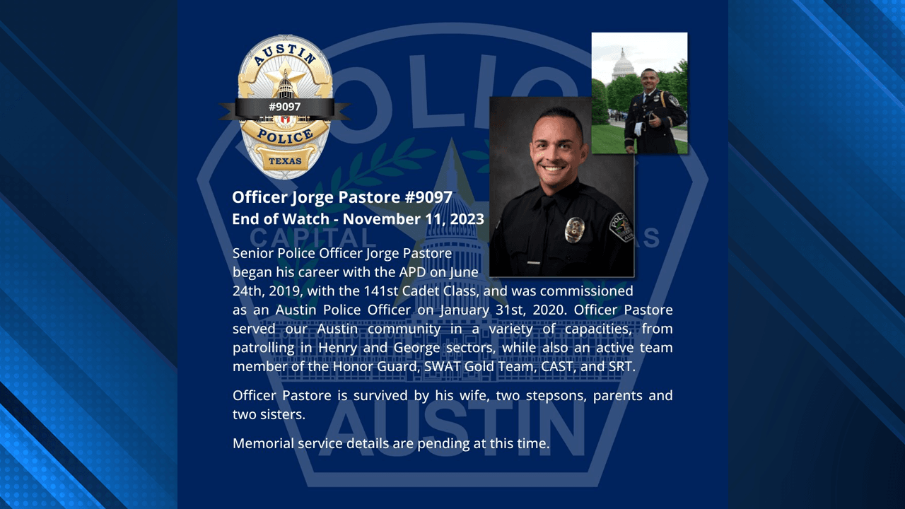 Pastore was fatally wounded during a SWAT incident in southwest Austin early Saturday morning, while officers were attempting to rescue hostages inside a home off of Bernoulli Drive.