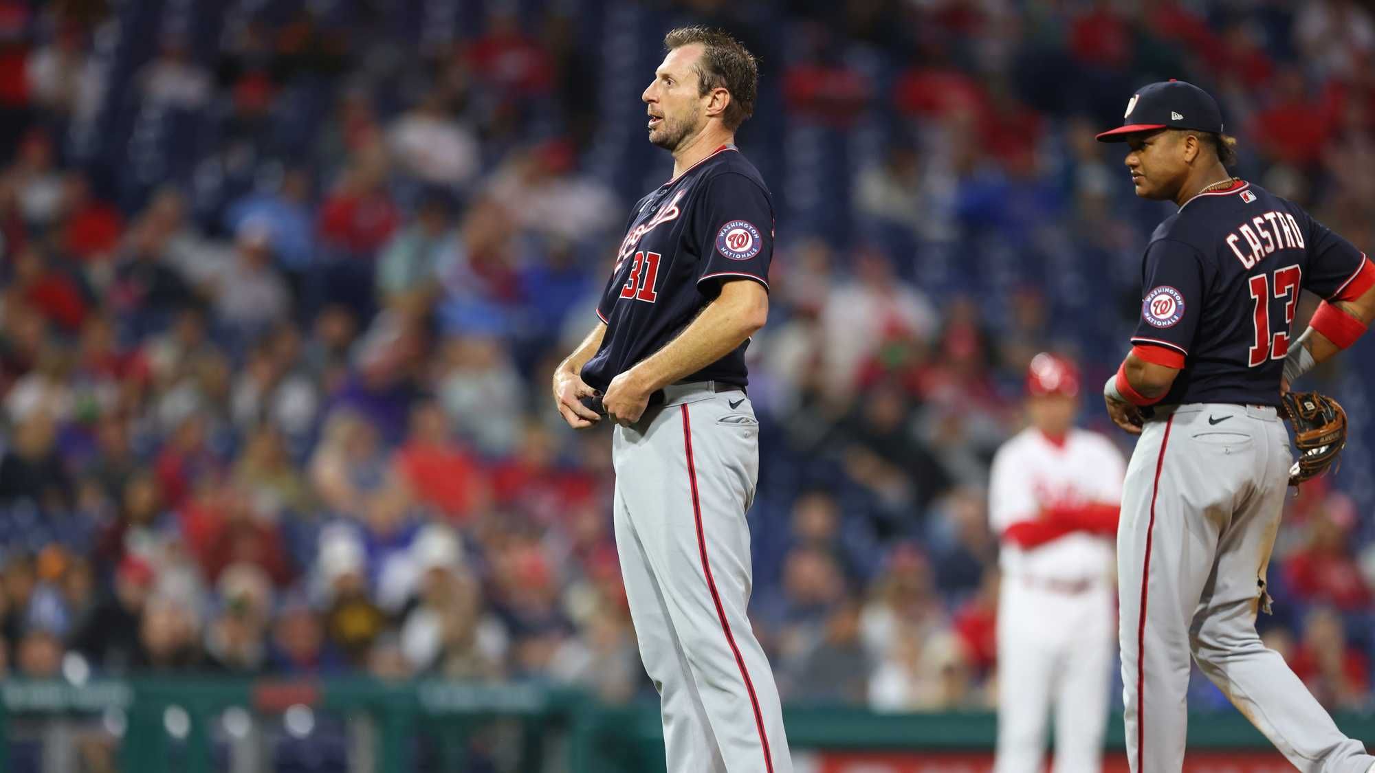 Max Scherzer endured three umpire checks for foreign substances, managing to pitch through the frequent interruptions to get the 3-2 win over the Phillies Tuesday night.