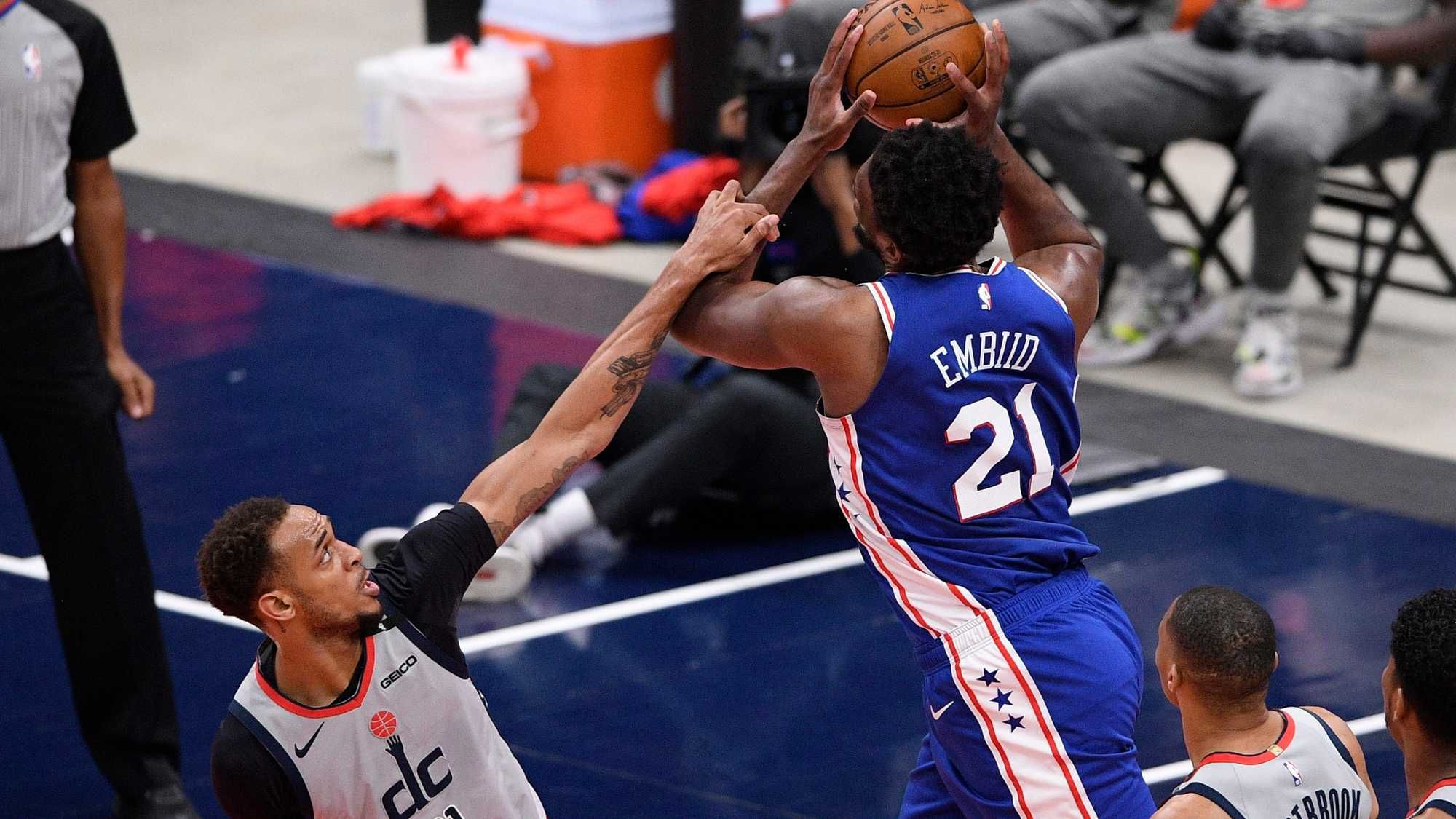 The Wizards also adjusted their strategy on defense in the fourth quarter, hacking Ben Simmons — who was 0-for-9 from the charity strike entering Game 4 — to send the low-percentage free-throw shooter to the line often. In all, Simmons went 5-for-11 from the free throw line Monday night, allowing the Wizards to control the clock during the crucial closing minutes as they worked to extend their lead.
