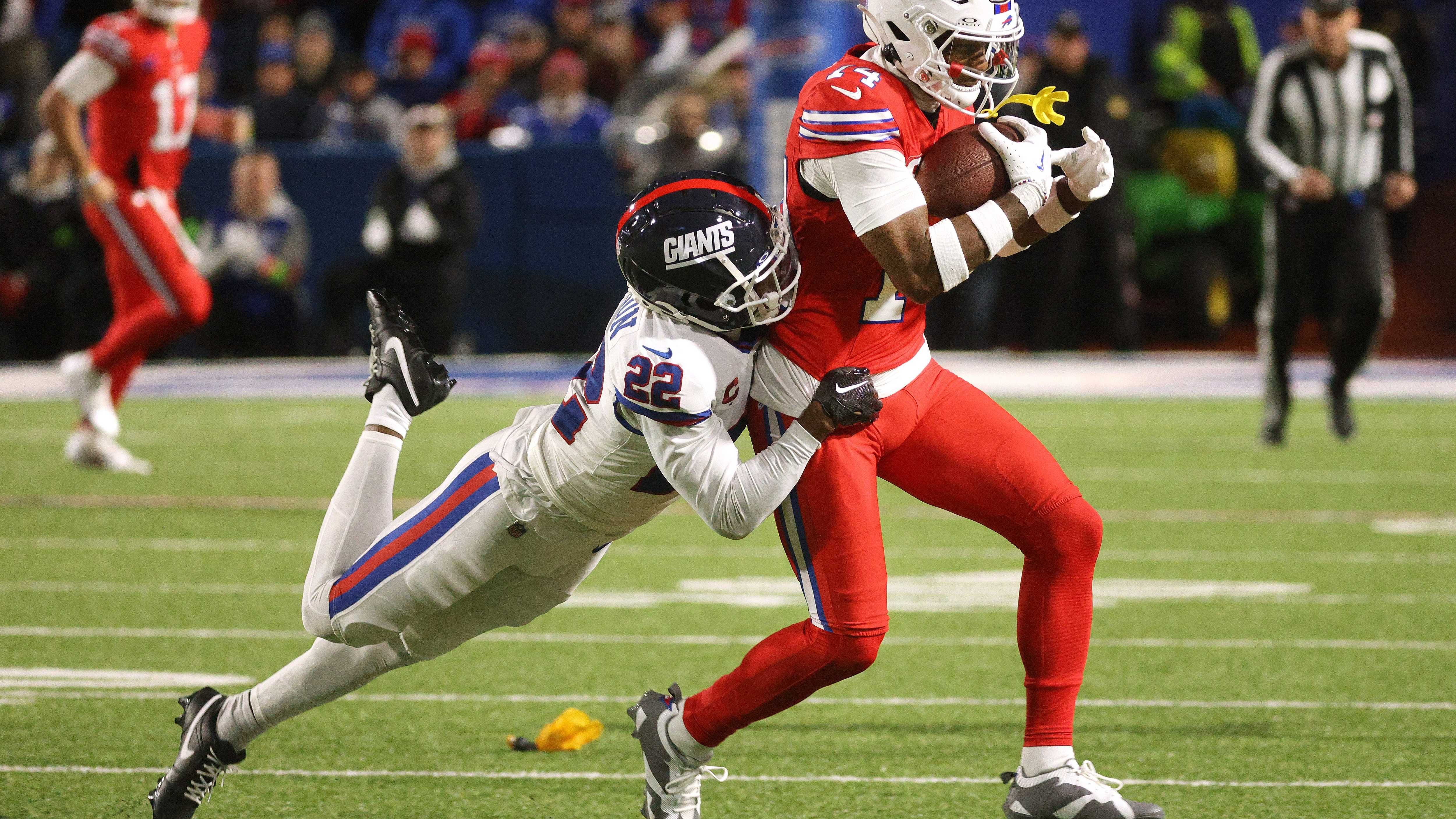 A scramble out-of-bounds left the ball at the Bills' nine-yard line with just two seconds to play. Then an incompletion in the end zone saw a flag on Terrel Bernard, giving the Giants an untimed down from the one-yard line to determine the game.