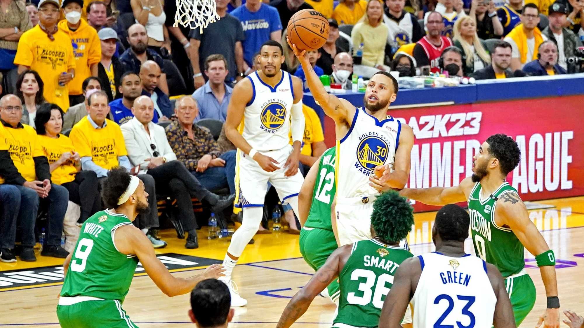 Green got a technical in the first quarter of the Warriors’ eventual win over the Celtics in Game 2 of the NBA Finals for getting tangled up with Grant Williams. Later in the half, he got mixed up with Jaylen Brown, fouling the Celtics wing as he shot and then tugging at his shorts after they got tied up.