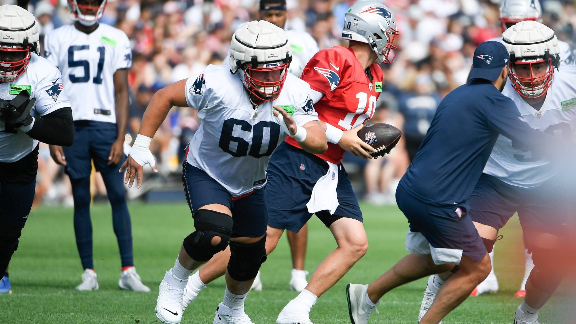New England's offense has struggled thus far in training camp while the defense has thrived, and perhaps frustrations boiled over a bit for captain David Andrews. The Patriots center got into it with star defensive lineman Christian Barmore.