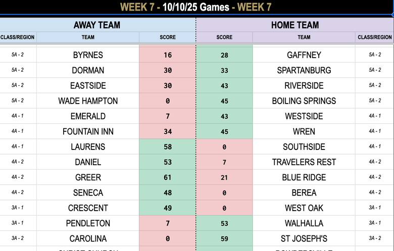 WEEK SIX SCORESSportsOctober 4, 2025