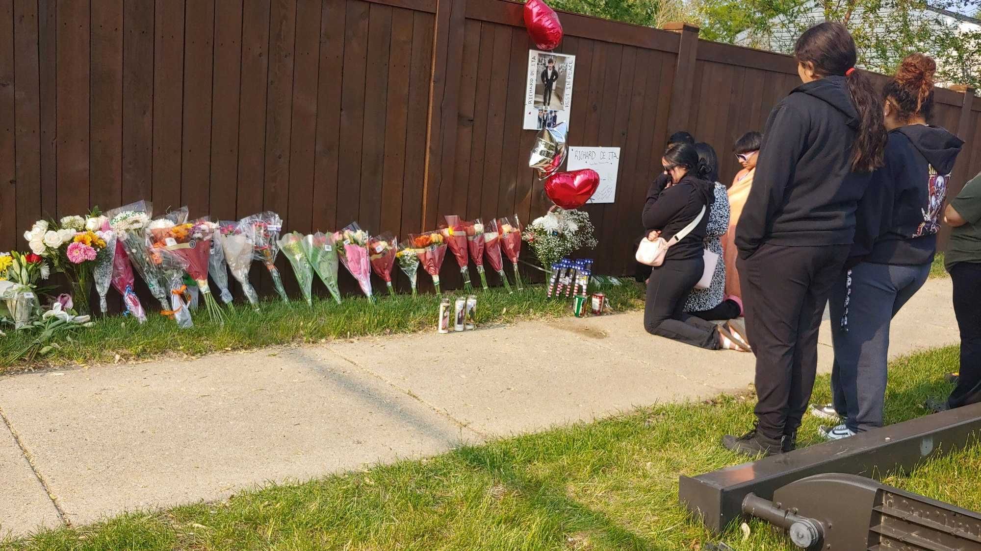 Most stood quietly staring at a memorial of flowers, holy candles, pictures and heart-shaped balloons. Some cried. Others hugged each other.