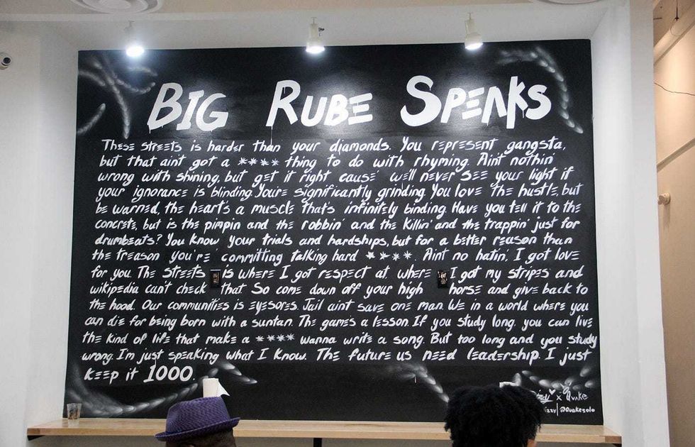 As for the Howell Mill location, which opened Thursday, May 9, customers will find murals of legendary Atlanta musicians, with particular honors going to the Dungeon Family. Walk inside and you'll see a black and white painting of Goodie Mob on the wall as you get towards the line to place your order (it's fast-casual, counter-style ordering). There's also a large poem from Big Rube, the DF's longtime resident spoken wordsmith, and in the men's bathroom you'll find renderings of other Atlanta rap artists depicted as martial arts masters, from Young Jeezy to Gucci Mane, T.I. and Jermaine Dupri.