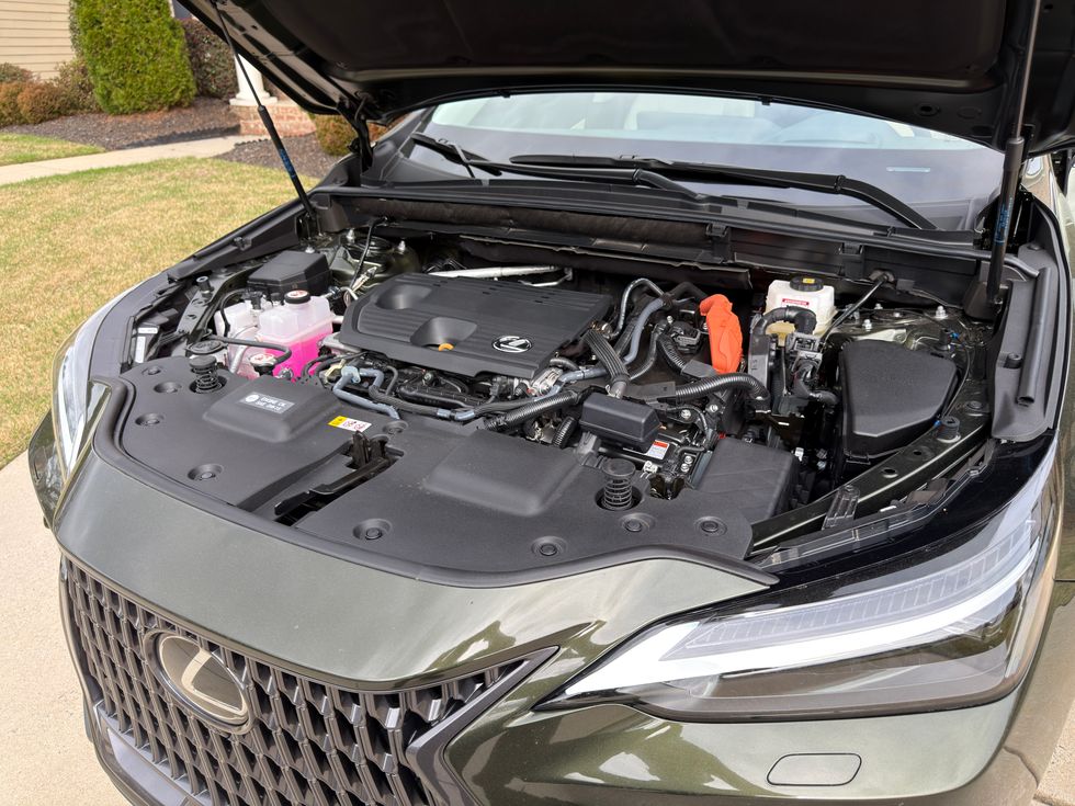 The NX 350h uses a hybrid powertrain that produces about 240 horsepower and delivers around 39 miles per gallon combined.