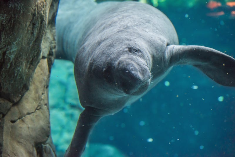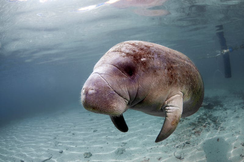 The gentle herbivore marine mammals live along the Southeastern coast of the U.S. and can grow to be up to 1,200 pounds. They may look somewhat like walruses or seals but they are most closely related to elephants.