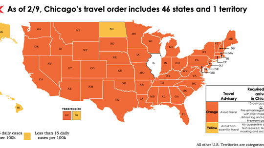 CHICAGO (WBBM NEWSRADIO) -- Chicago health officials on Tuesday updated the city's emergency travel order, removing several state's from the quarantine list.
