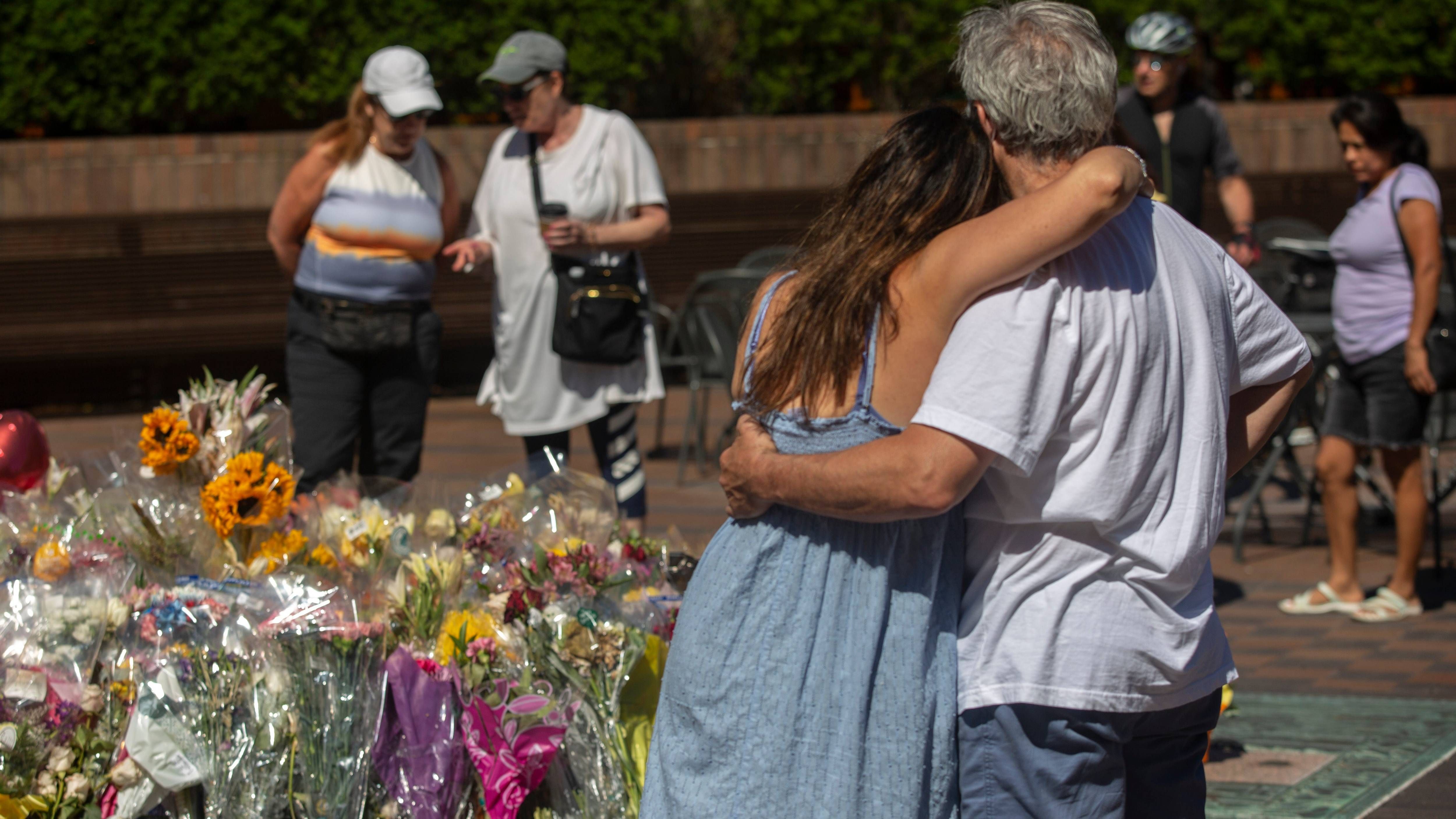They hugged each other. Some carried flowers. Some were seeing each other for the first time since a deadly mass shooting occurred at this site on the Fourth of July.