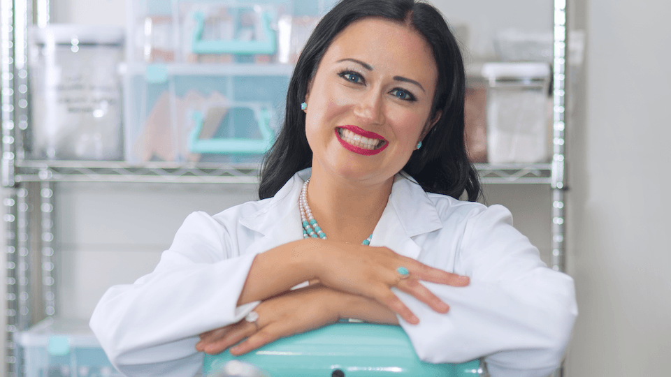 Spira Farms sits on rows of storage shelves - small trays of plants with LED lights over them.