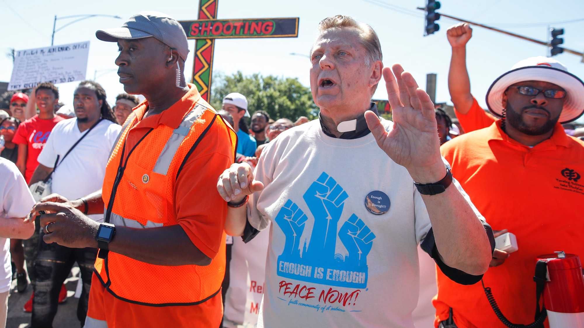 Meanwhile, at Mass at Saint Sabina Sunday, Father Tom Walsh told Pfleger over the livestream that his congregation supports him.