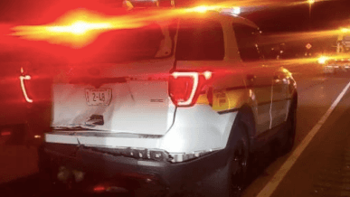 Three ambulances responded, taking the trooper and two people to the hospital.