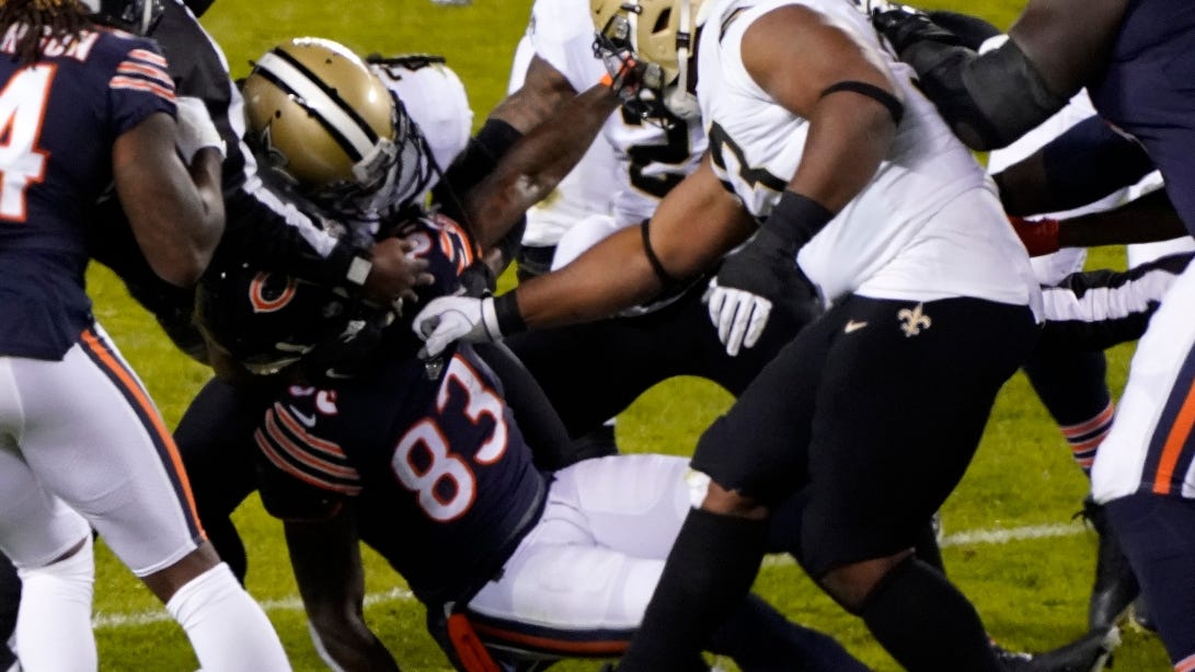 Chicago receiver Javon Wims got ejected for punching New Orleans safety C.J. Gardner-Johnson in the third quarter. Marshon Lattimore then intercepted Nick Foles, leading to a tiebreaking field goal by Lutz.