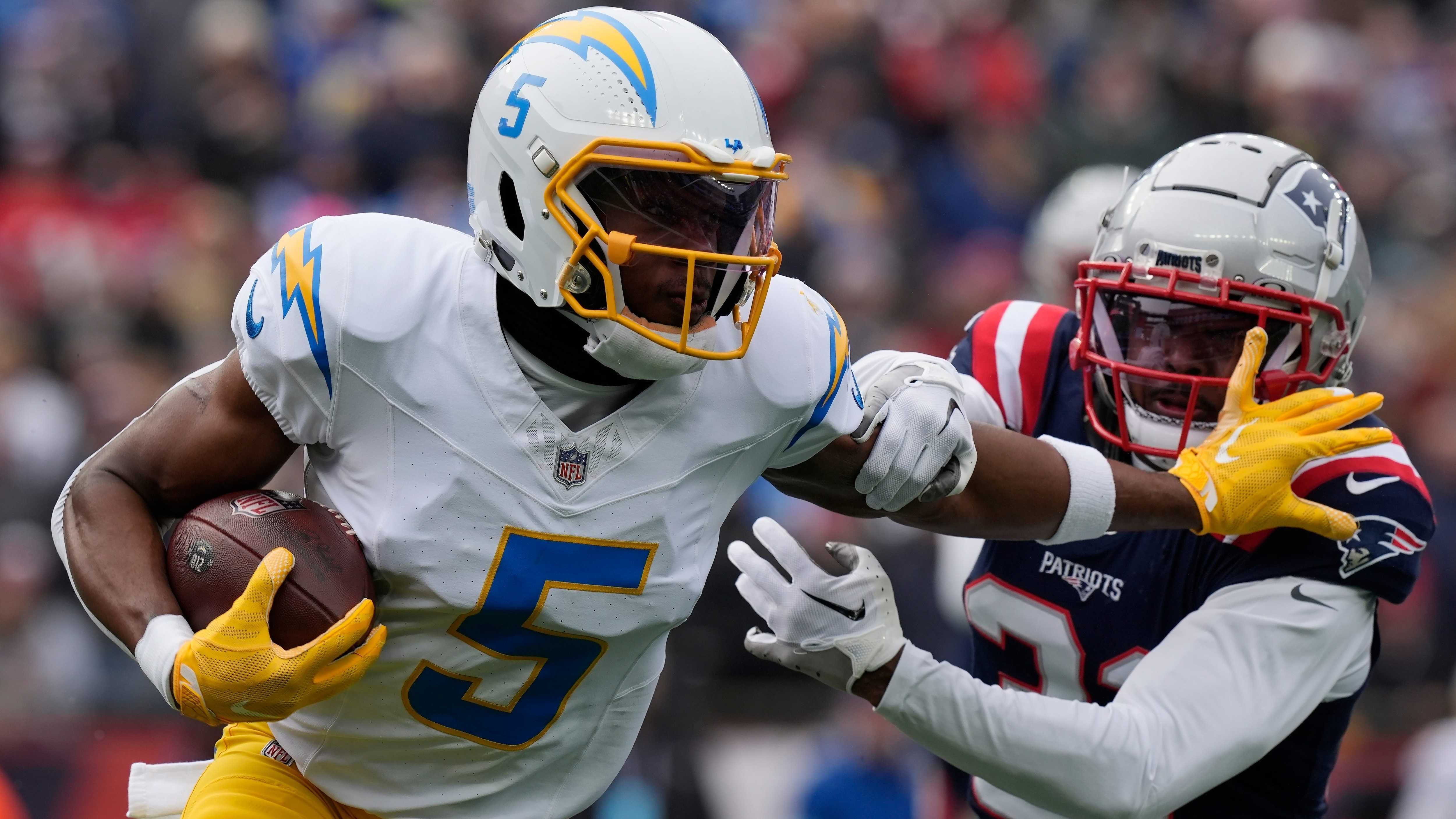 FOXBOROUGH, MASSACHUSETTS - JANUARY 5: Mack Hollins #13 of the Buffalo Bills reacts as he holds the ball against the New England Patriots during the first quarter at the Gillette Stadium on January 5, 2025 in Foxborough, Massachusetts. The Patriots won 23-16.Rich Gagnon/Getty Images