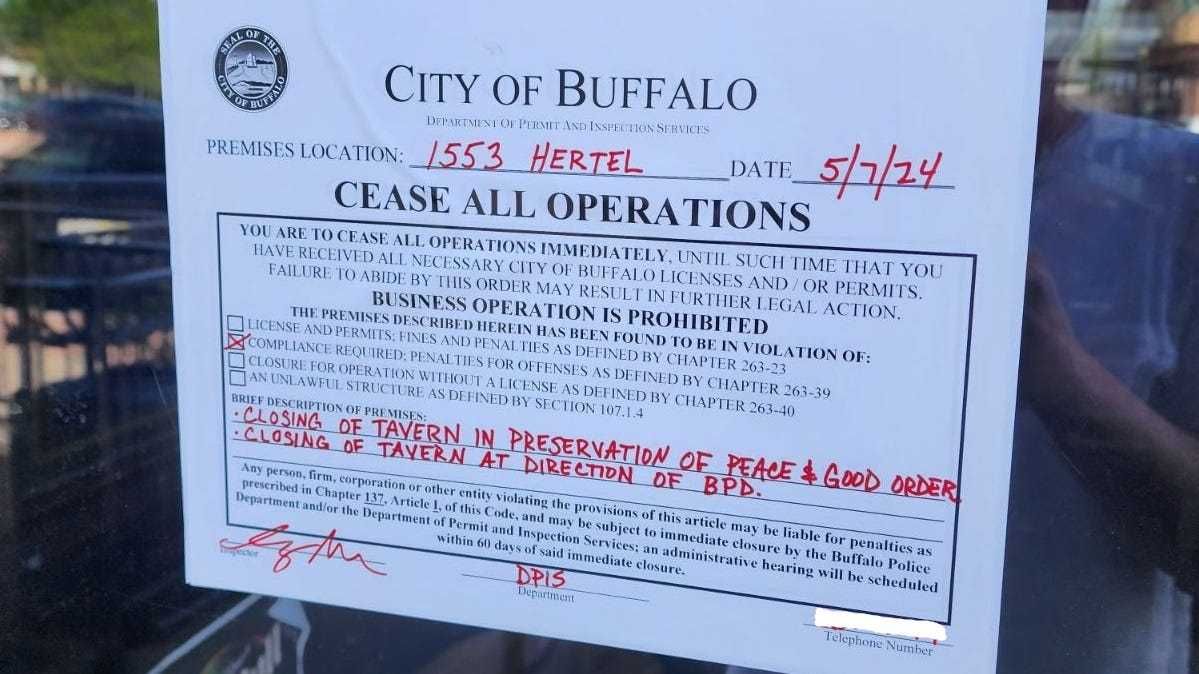 Less than a month ago, Del Denby Tavern on Hertel Avenue was ordered to cease operations after a 46-year-old man was shot outside the establishment at around 1 a.m. ET.