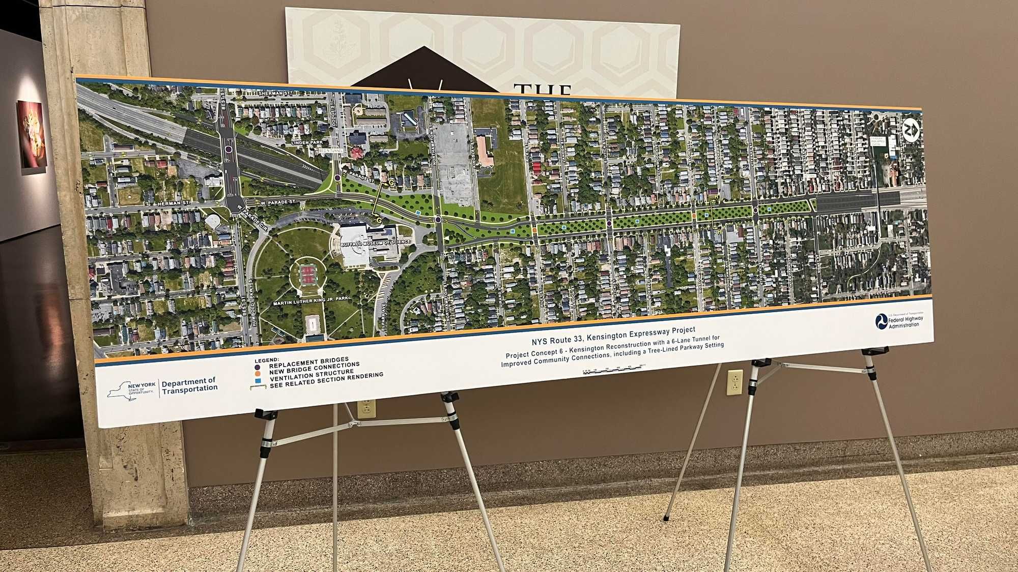 "$55 million from our reconnecting Communities Program, alongside significant funding from the state, that's going to help fund an effort to cap the Kensington Expressway effectively moving it underground and build new crossings and park space. On top of that reconnecting Hamlin Park to the rest of East Buffalo. It'll make it safer to cross the street so kids and families can play outside more, it'll reduce pollution from the highway, so that fewer children in this area have the health effects of breathing that air. It will reconnect this community to places that people count on every day parks, churches, schools, and jobs," said Sec. Buttigieg.