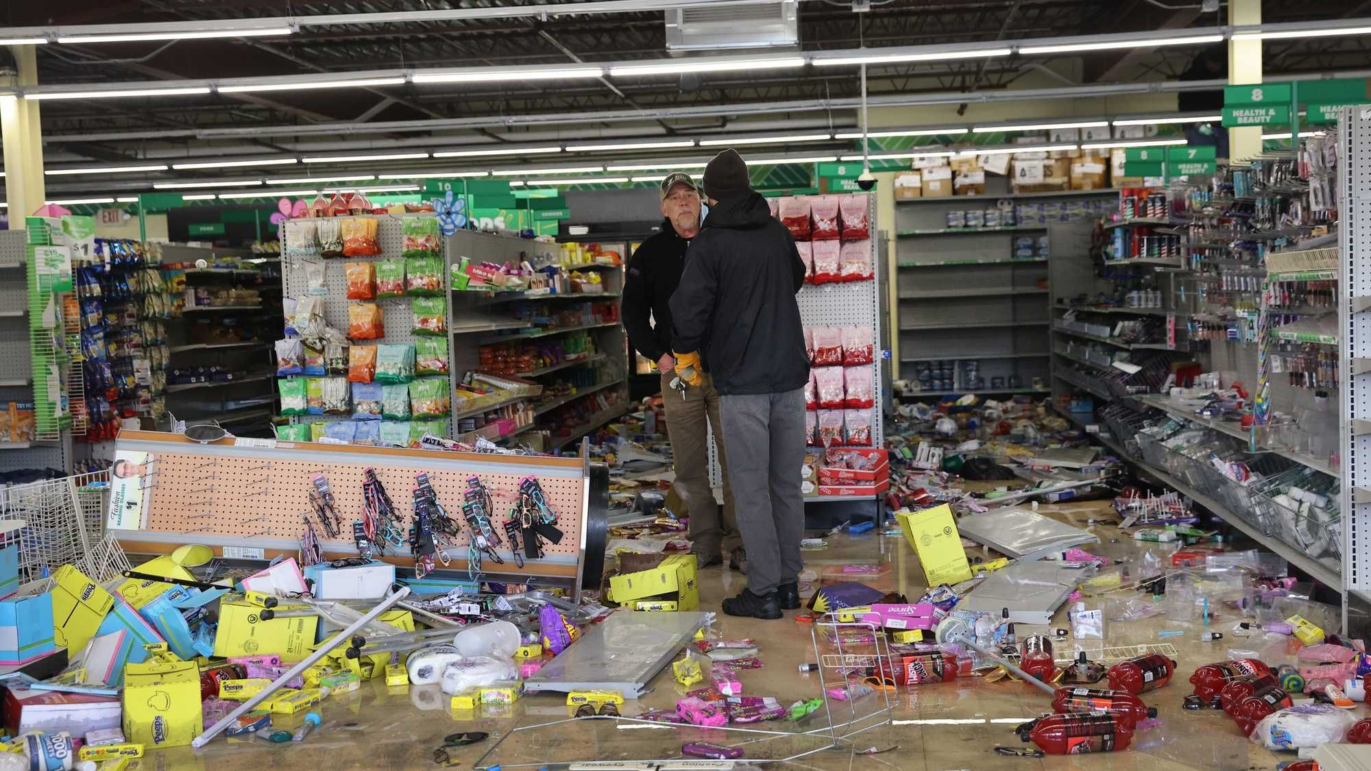In a late-night press conference Tuesday, authorities displayed rocks, cans, bottles, and other debris that was thrown at officers who were guarding the Brooklyn Center police station.
