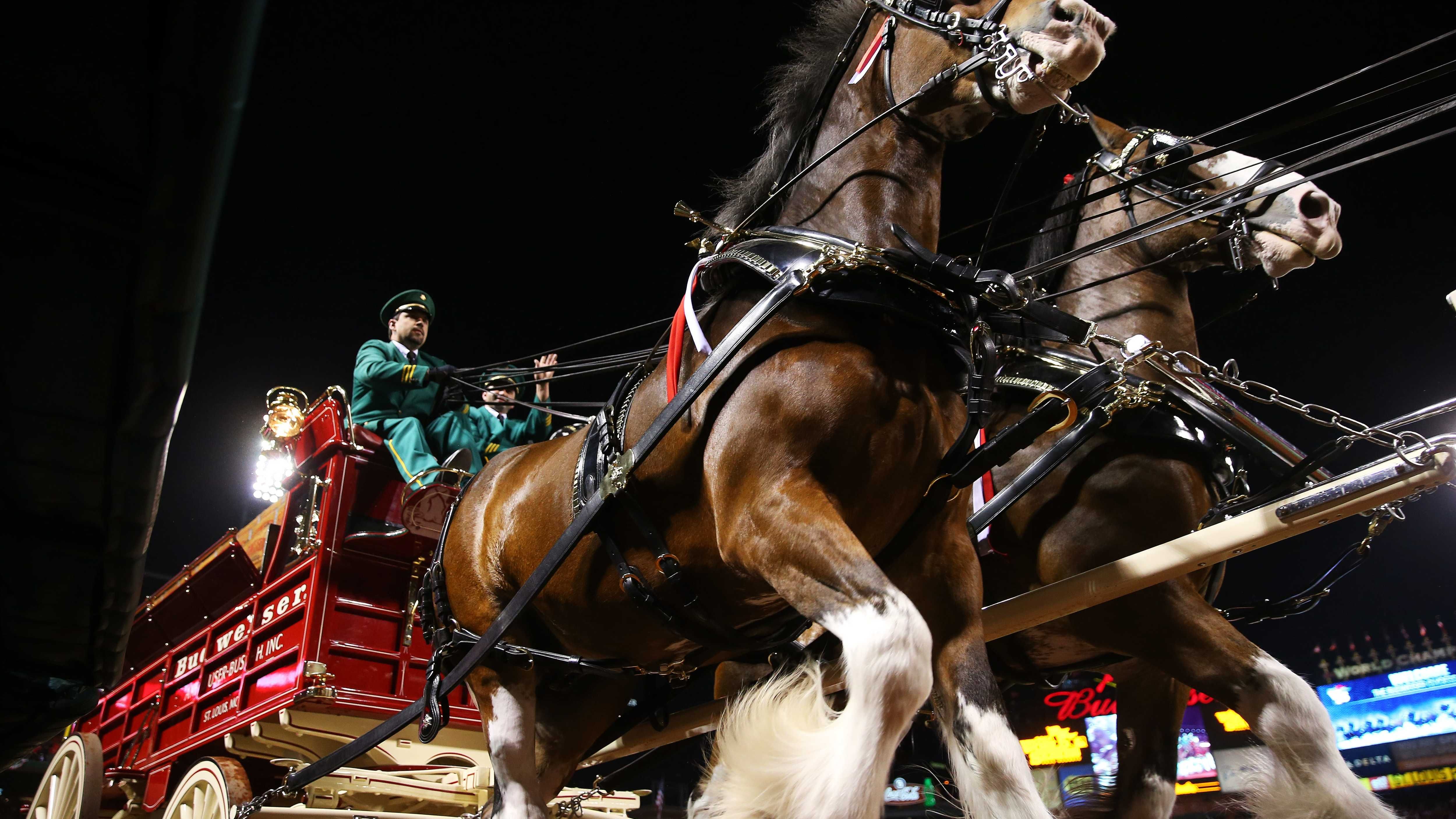"Let me tell you a story about a beer, rooted in the heart of America," the narrator says as the horse runs in front of the Gateway Arch in St. Louis, where Anheuser-Busch is headquartered.