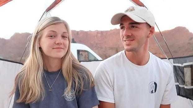 Gabby Petito and Brian Laundrie as captured on police bodycam video during a stop in Utah on Aug. 12.Moab Police Department via AP