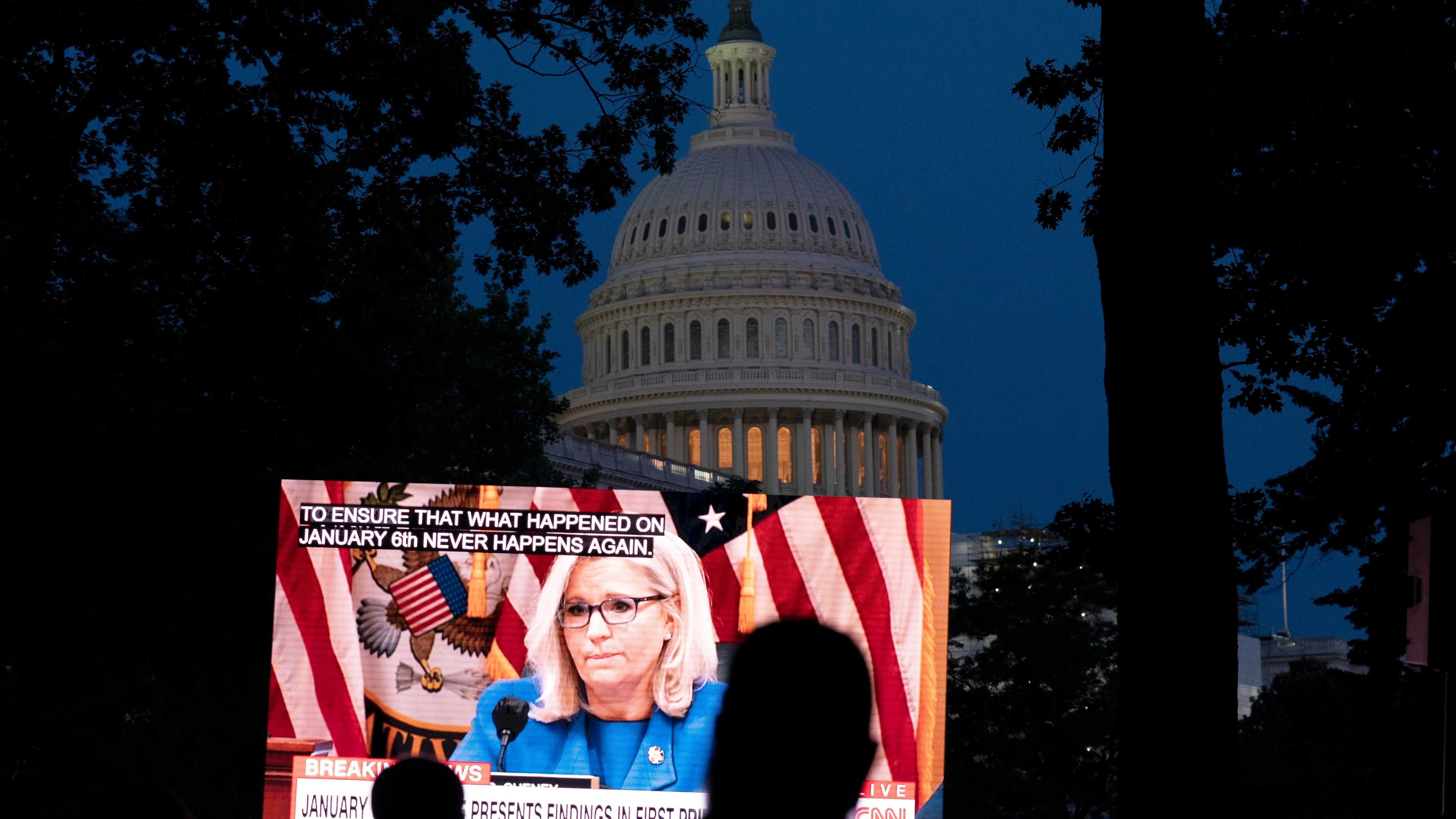 Throughout the opening remarks by Thompson and Cheney, video clips were shown of former Attorney General Bill Barr and Ivanka Trump, the former president’s daughter. Barr testified that he told Trump “in no uncertain terms that I did not see evidence of fraud.”