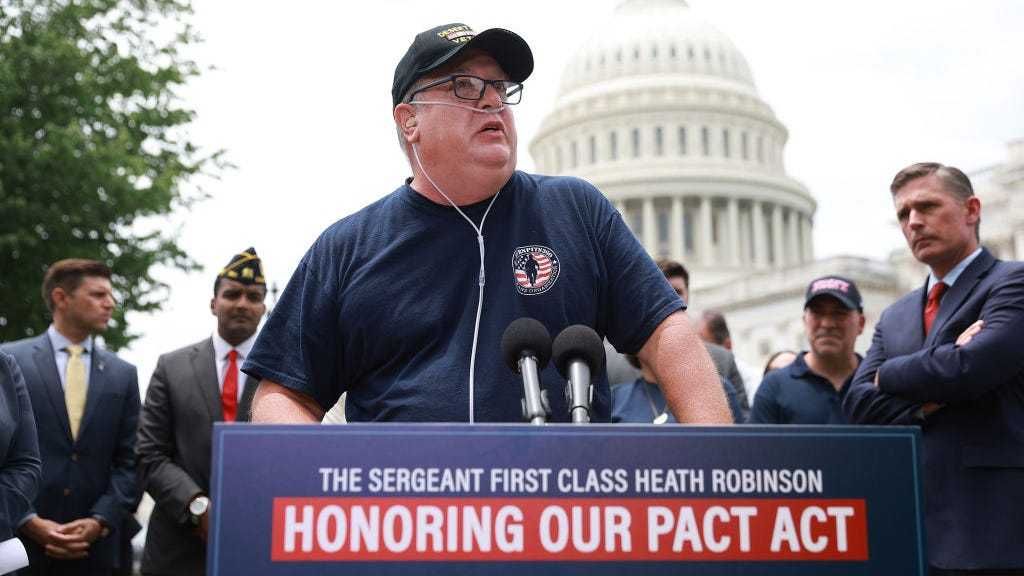 Tim Houser, a Desert Storm veteran from Twinsburg, Ohio who is with Burnpits 360 attended a news conference about the Honoring Our Promise to Address Comprehensive Toxics (PACT) Act on Capitol Hill Thursday, after the Senate failed to pass the legislation.