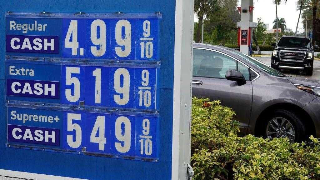 The average national gas price on Friday was $4.33 per gallon, according to AAA. California has the highest average at $5.72, followed by Nevada at $4.92, Hawaii at $4.84, Oregon at $4.72, and Washington at $4.72. Kansas has the cheapest average at $3.82.