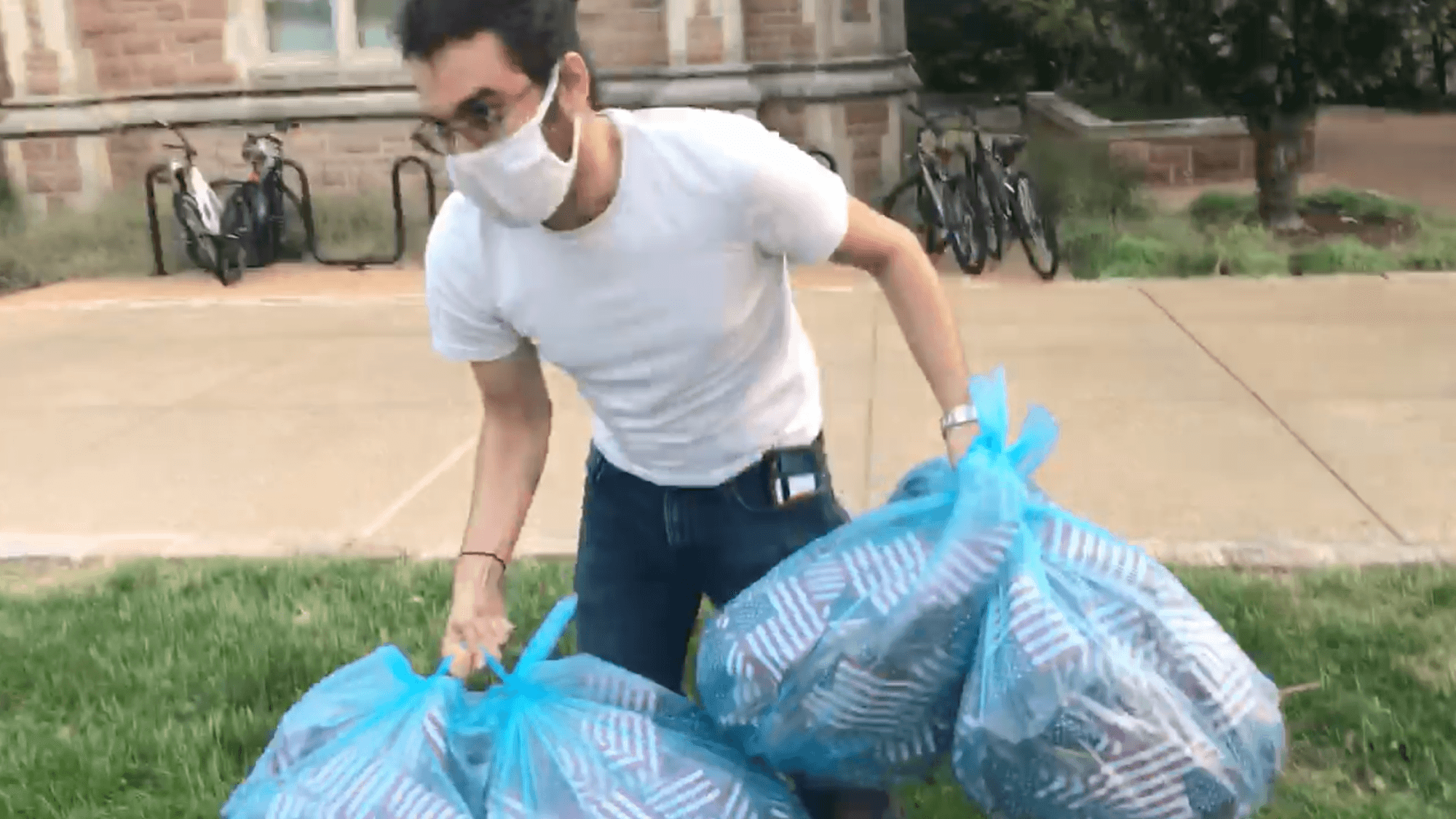 What looked to be hundreds of flags were placed on campus in the shape of a cross. According to the video, the group had permission to make the display.