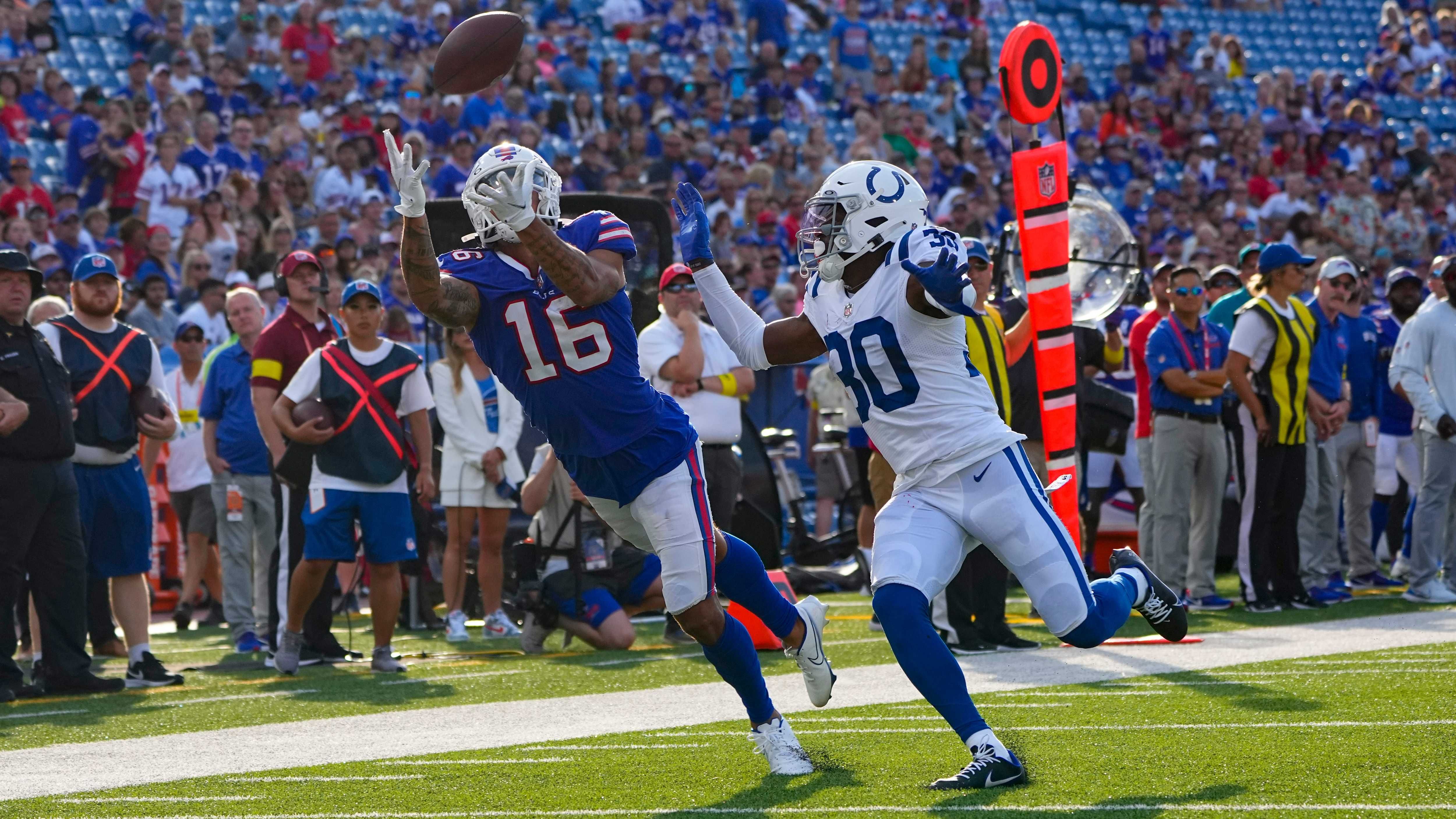 Micah Hyde stepped up for the defense when he intercepted an Allen pass that was a bit underthrown and into tight coverage. Hyde raced back the other way, and even though the whistle blew to stop the play, Allen still chased Hyde all the way back to his own end zone, where they both ultimately had a light-hearted laugh about it.