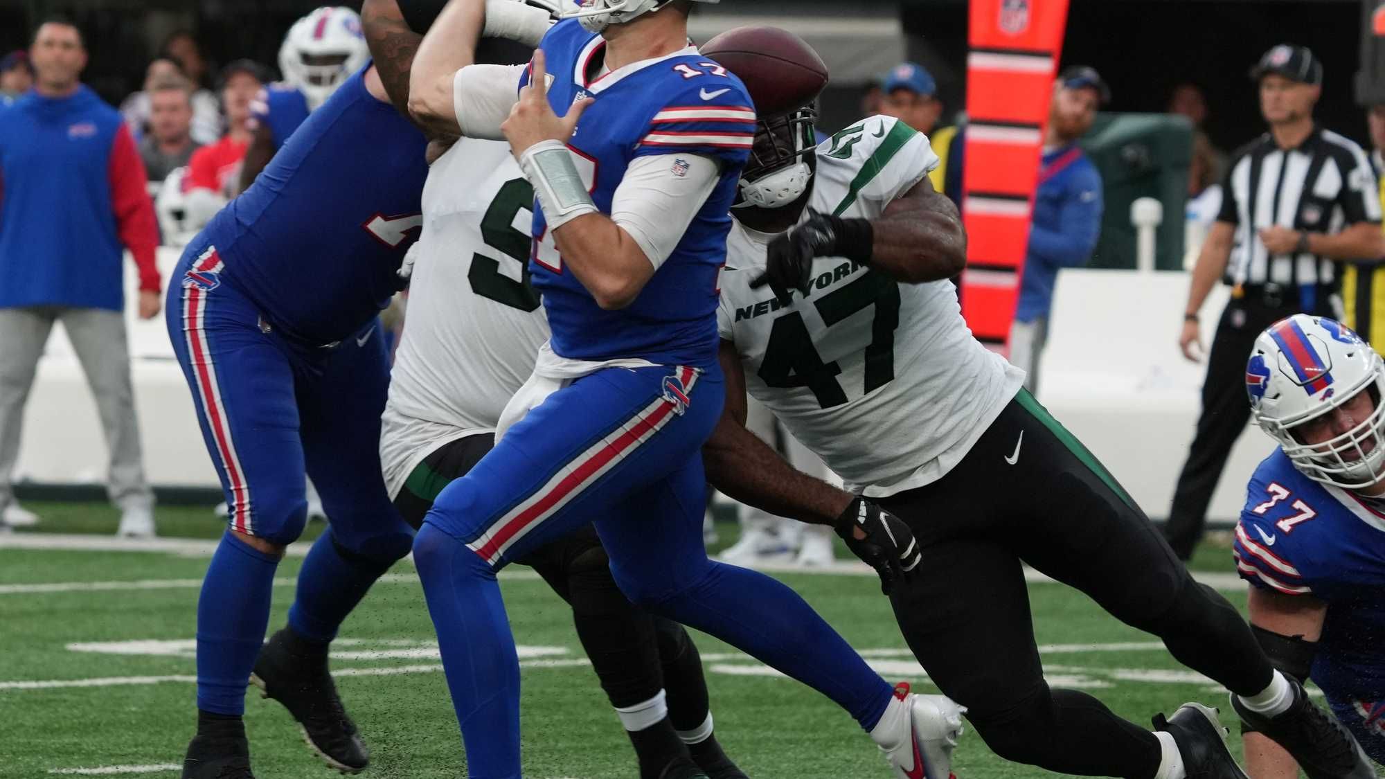 Perhaps the bigger concern with Allen going forward is the health status of his right throwing elbow, which he injured on the final drive of the game trying to get Buffalo in scoring position. On a second down passing play, Allen's throwing arm was hit by Jets defensive end Bryce Huff, causing his arm to bend back in an awkward way.