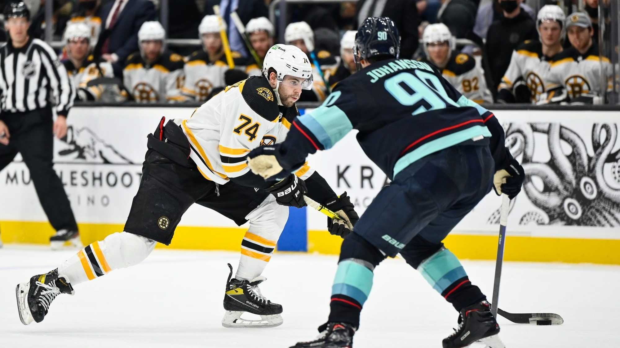 Apparently the alarm didn't stop. A few minutes later, Edwards announced to viewers that they were being forced to evacuate the building. NESN quickly flipped over to the Kraken's home television broadcast, featuring play-by-play voice John Forslund and color commentator J.T. Brown on Root Sports Northwest.