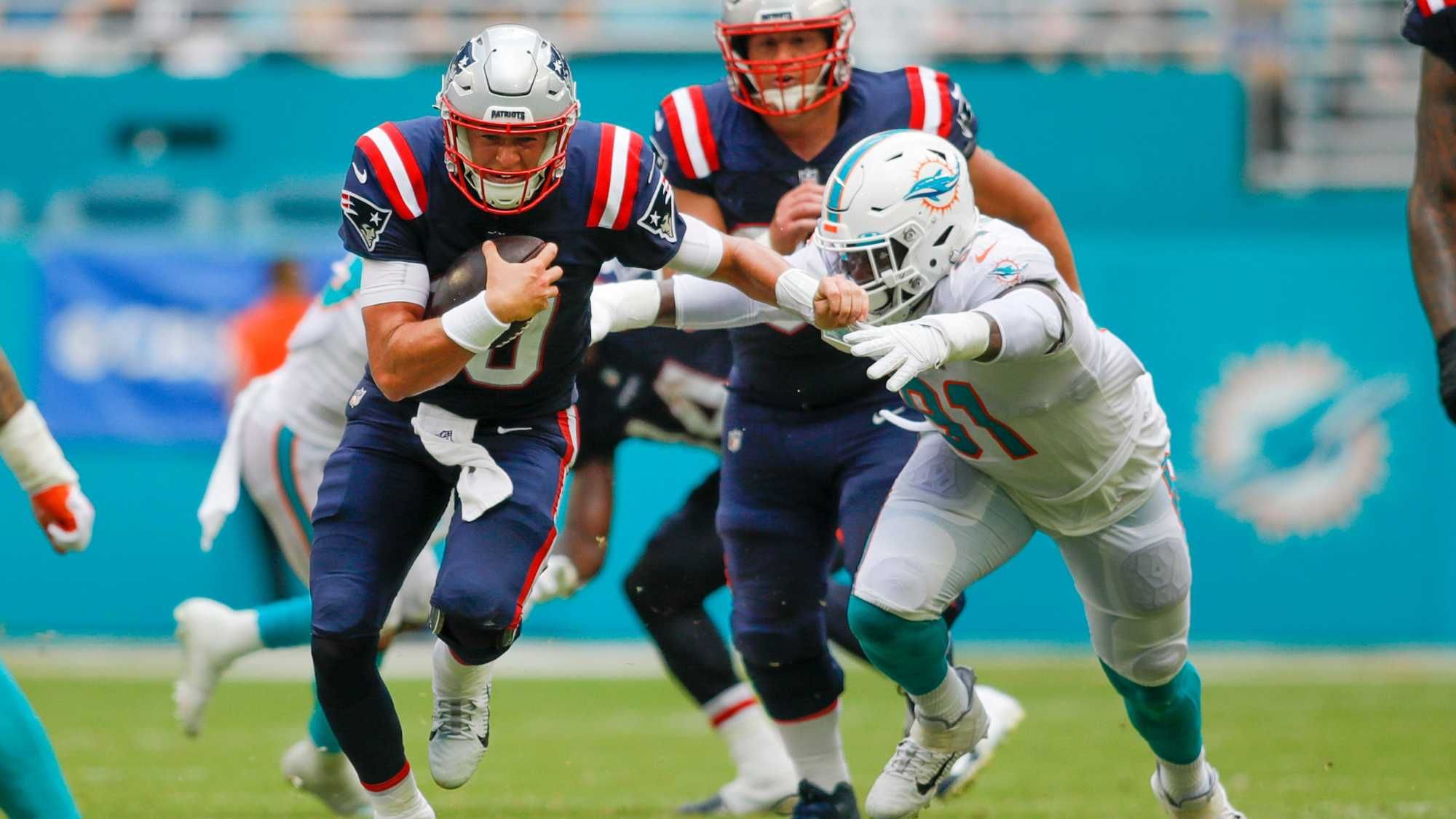 While the Dolphins had Tyreek Hill making eight catches for 94 yards and Jaylen Waddle breaking loose for a 42-yard touchdown, the Patriots’ top receiver was Jakobi Meyers at four catches for 55 yards. They did have one big play on a 41-yard completion to Kendrick Bourne, but Bourne didn’t even play until the fourth quarter.