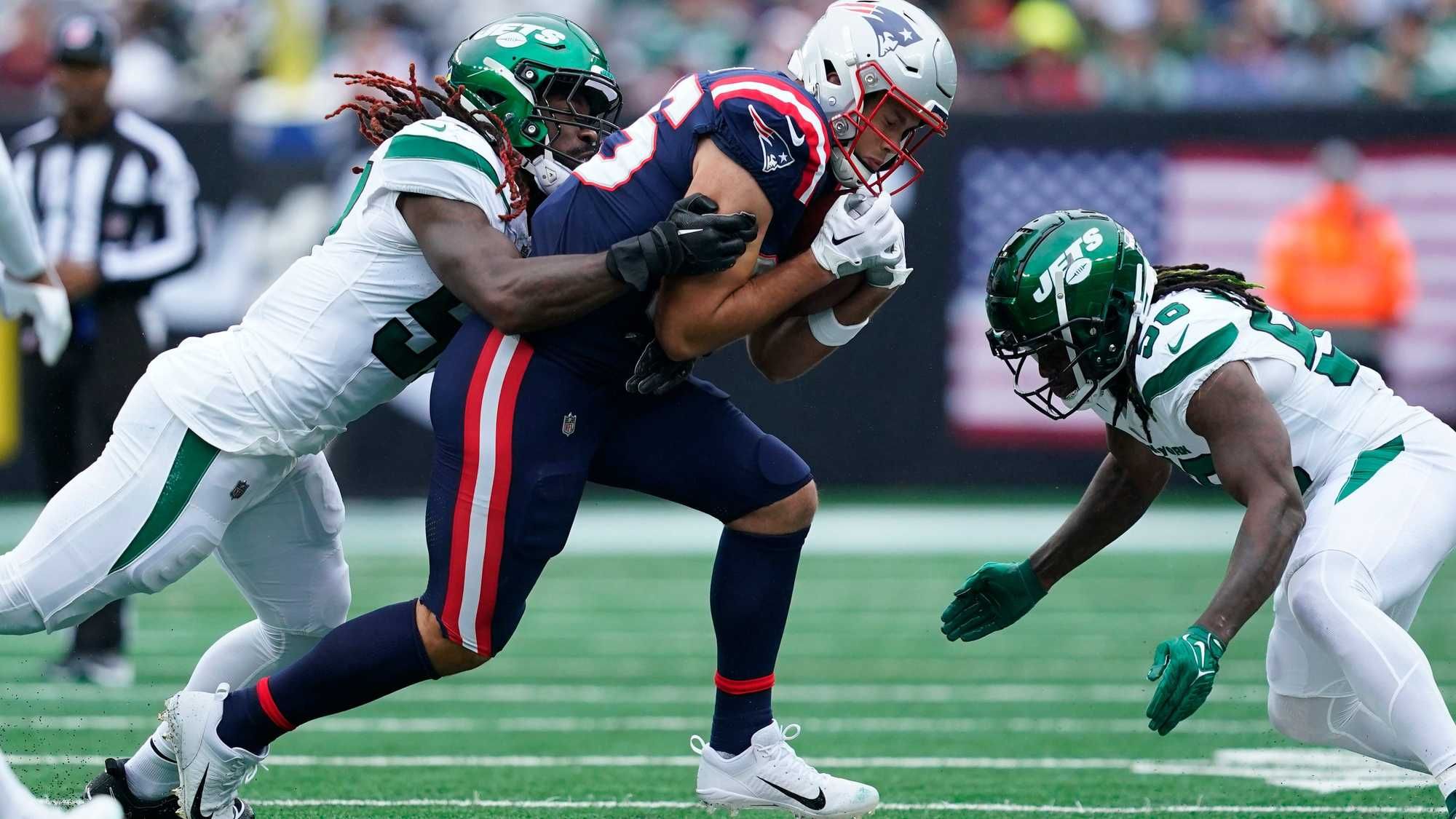 For those unfamiliar, following New England’s 15-10 win on Sunday against the Jets, cornerback Sauce Gardner told the New York media that Jones hit him with a low blow: