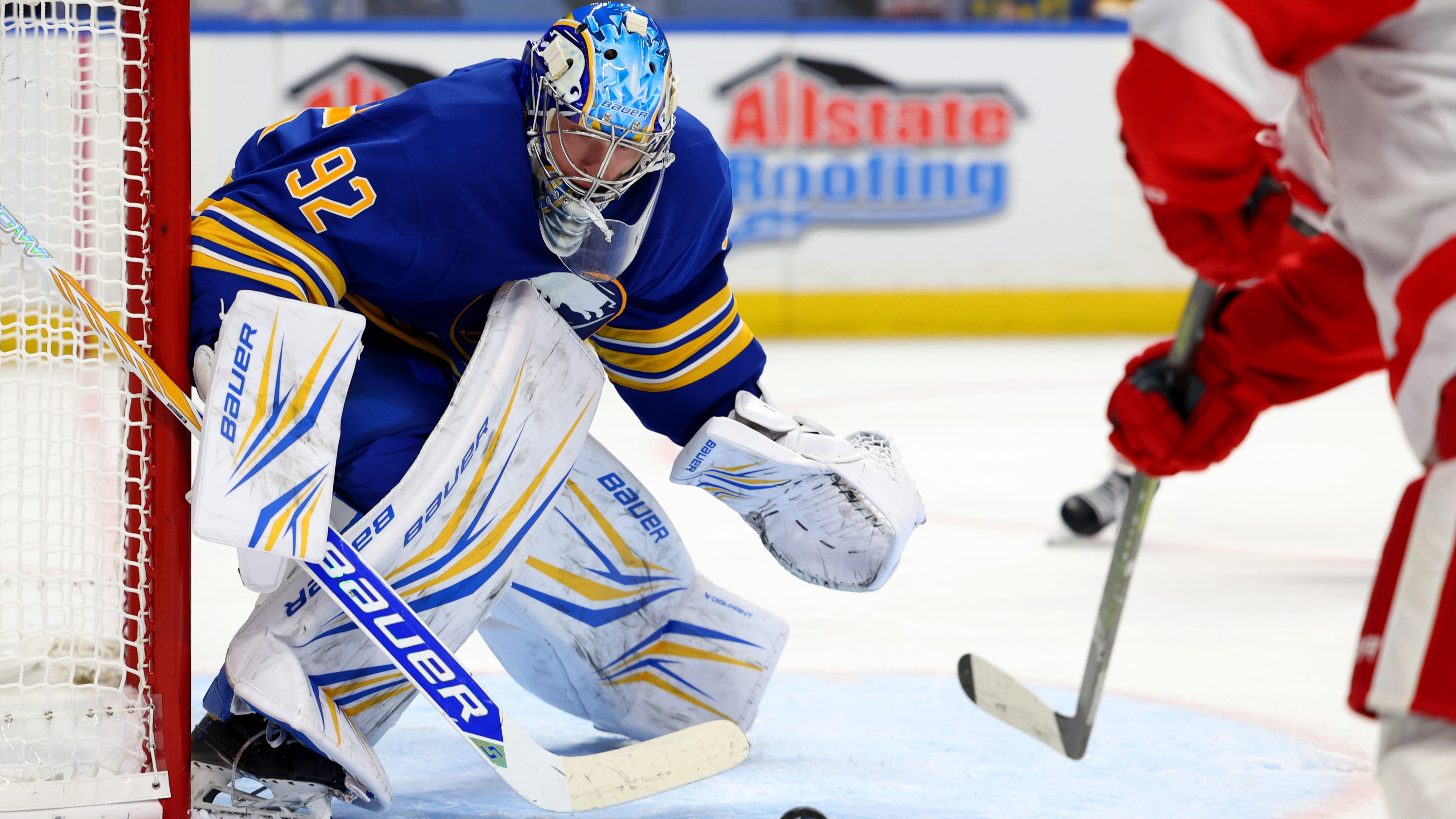 The 25-year-old goaltender had to wait over 10 minutes for his first shot on goal, and he had to make a great save on former Sabres defenseman Jacob Bernard-Docker. A few minutes later, he also stopped a clean-cut breakaway from forward Marco Kasper.