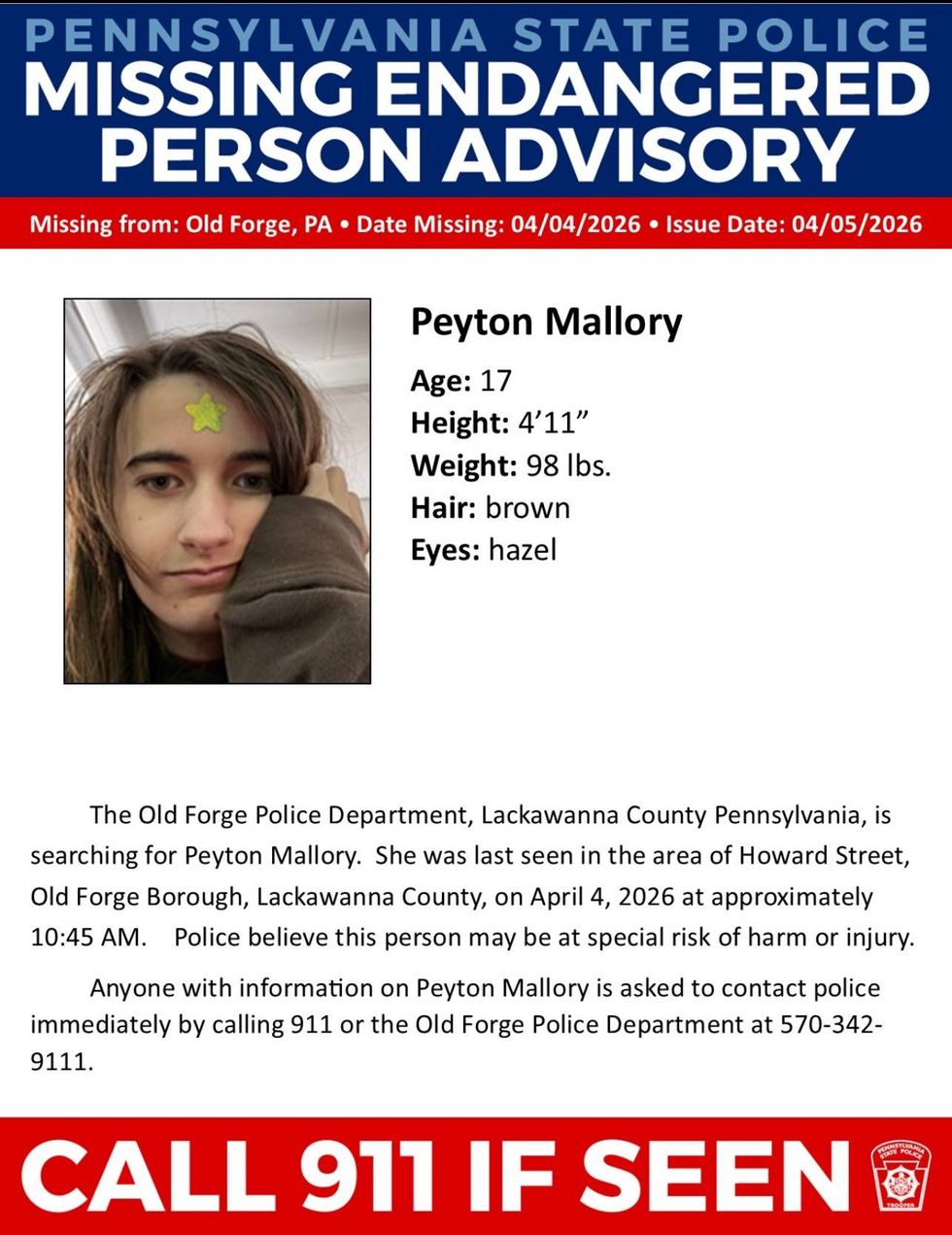Mallory is described by police as being four feet, 11 inches tall and weighing about 98 pounds. She has brown hair and hazel eyes. Local officials have not provided details on what she was wearing at the time of her disappearance, but they are urging anyone with information regarding her current whereabouts to come forward. If you have any information that could help authorities find Mallory, you are asked to contact 911 immediately or reach out to the Old Forge Police Department directly at 570-342-9111.
